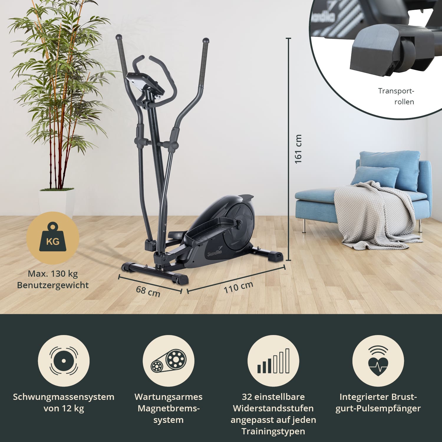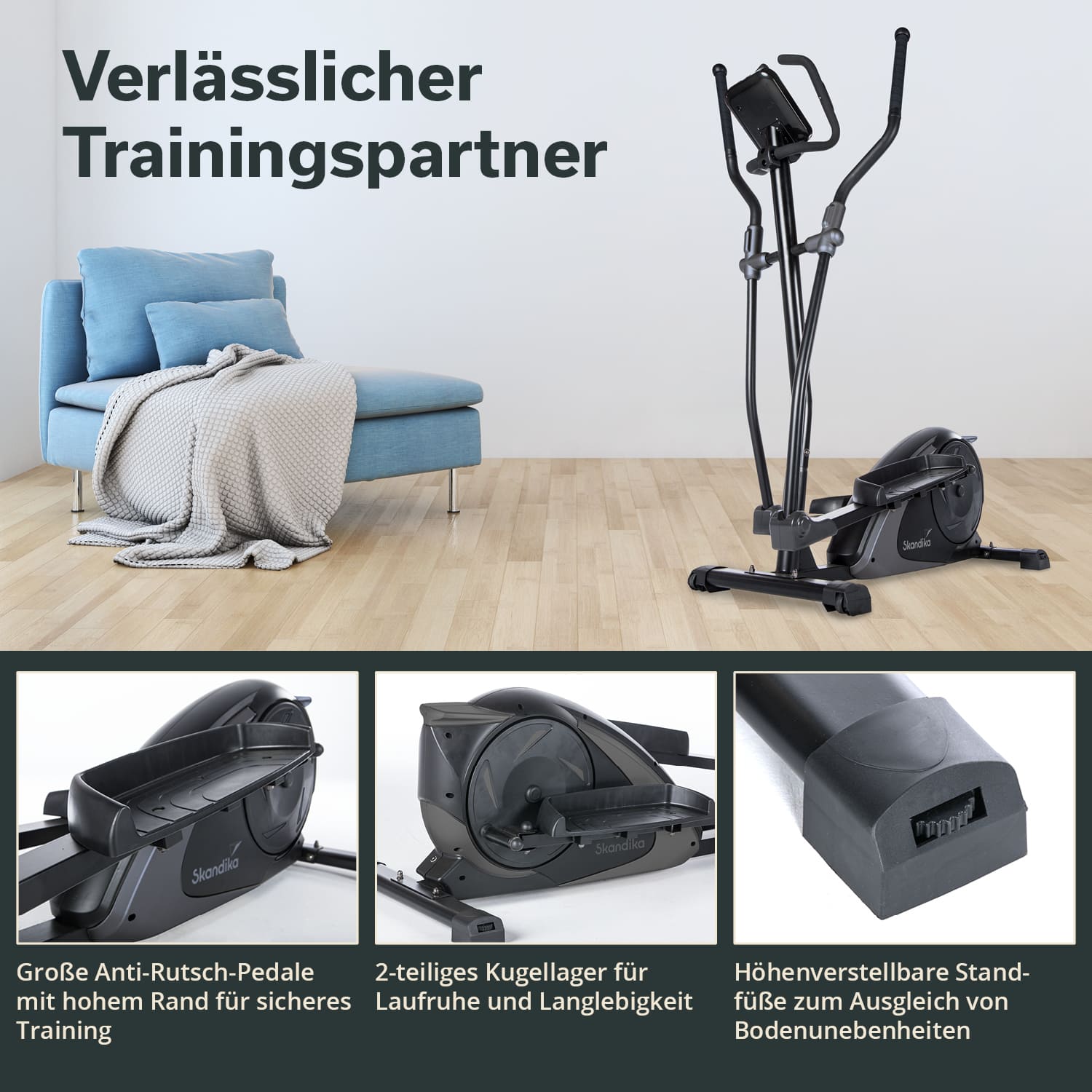Der Skandika Crosstrainer Adrett überzeugt durch seine Funktionalität und Stabilität und integriert sich dank des eleganten und hochwertigen Designs wunderbar in jedes Wohnzimmer. Das flüsterleise Magnetbremssystem und der leichte Aufbau runden das Erlebnis mit dem Adrett komfortabel ab.