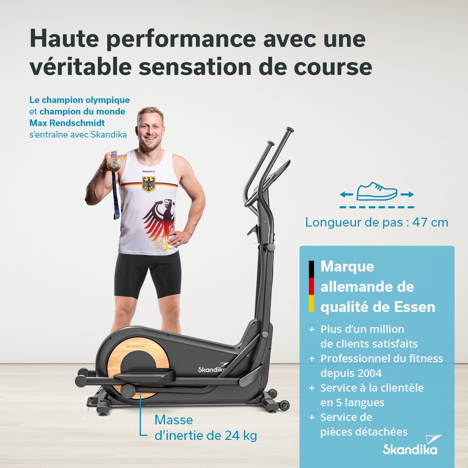 Die Aufhängung der Trittflächen beim Carbon P24-RG läuft über ein zusätzliches Rollensystem. Dadurch werden die Bewegungen noch geschmeidiger und gelenkschonender. Das Skandika Easy Glide System sorgt für eine gleichmäßigere Verteilung der Kräfte über die Rollen, die die Belastung der Maschinenteile verringert und die Langlebigkeit des Geräts erhöht.