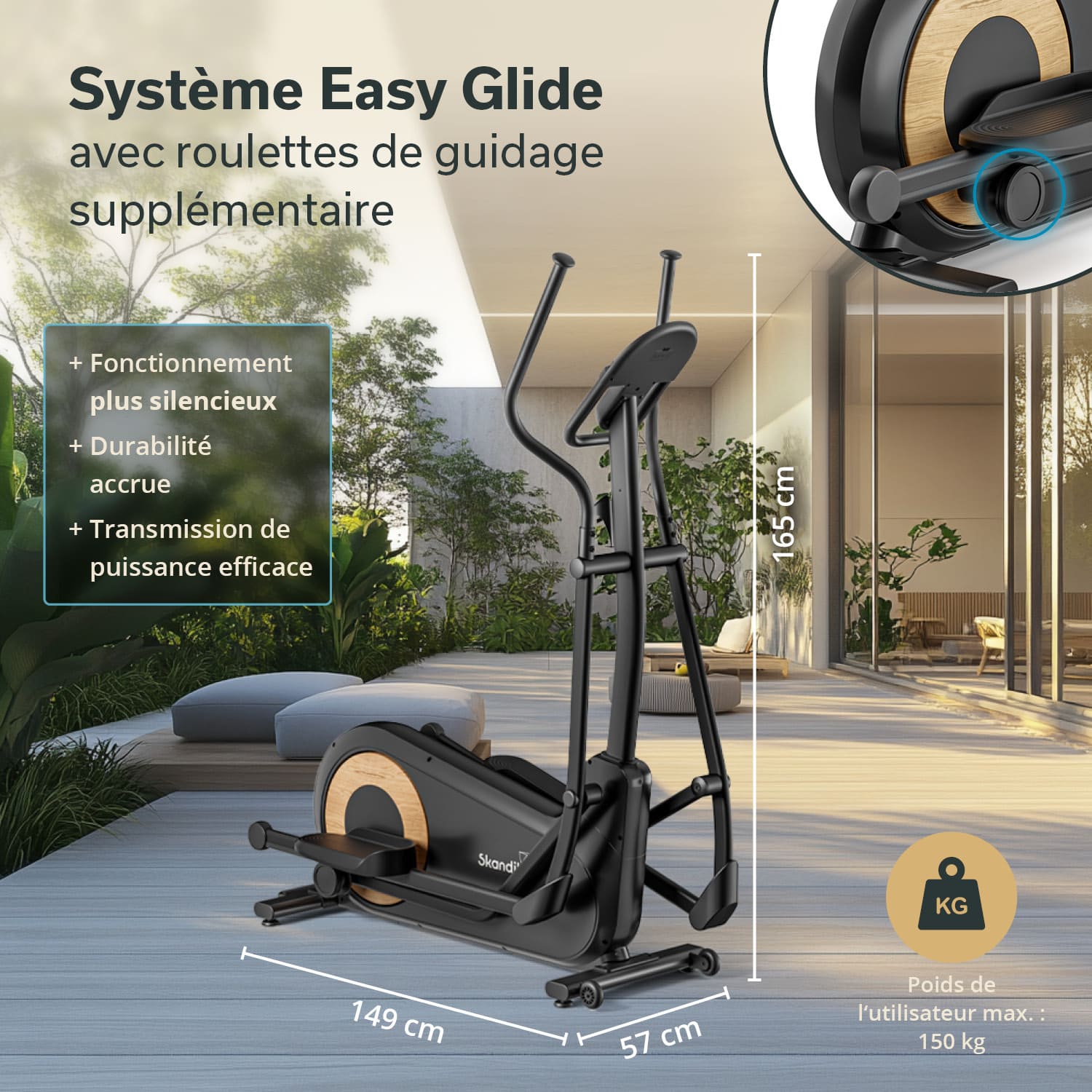 Dank integrierter Transportrollen vorne und einem praktischen Griff hinten lässt sich das Gerät mühelos an verschiedene Orte verschieben. Mit einer maximalen Belastbarkeit von 150 kg bietet der Crosstrainer zuverlässige Leistung und Stabilität, selbst bei intensiven Trainingseinheiten.