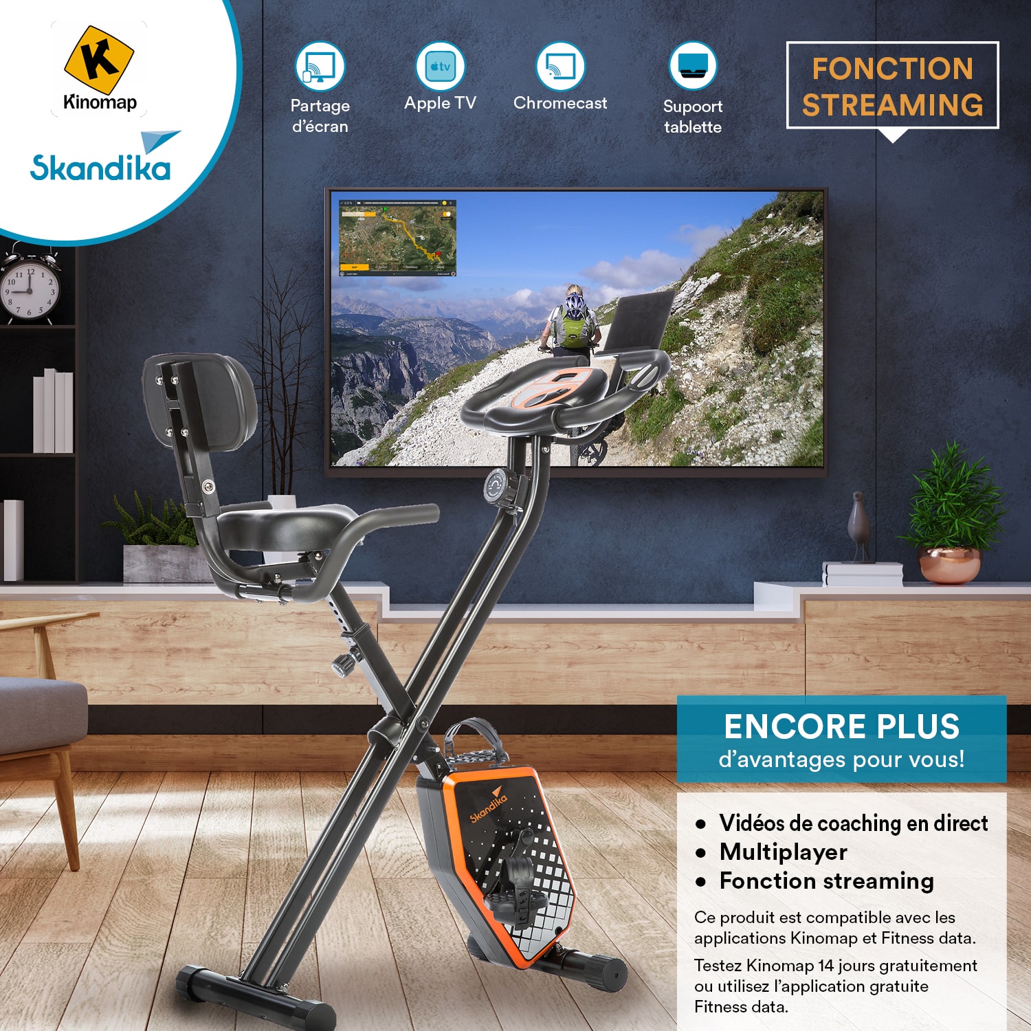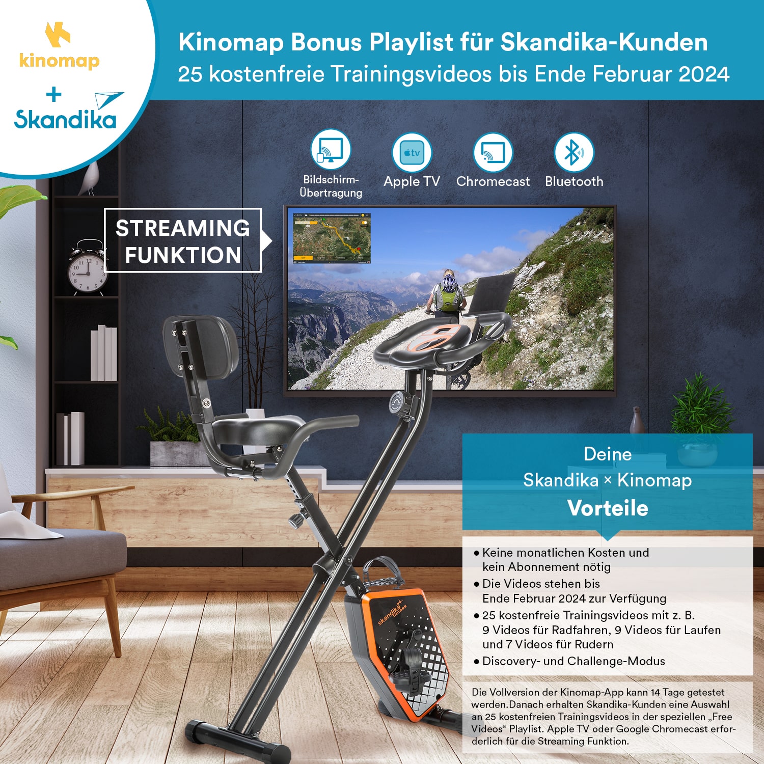 Die Bluetooth-Schnittstelle erlaubt die Verbindung des Geräts mit Fitness Apps wie Kinomap für Entertainment und Motivation beim Training. Skandika Kunden erhalten durch die Gold-Partnerschaft mit Kinomap einen Code, um 60 Tage kostenfrei die Vollversion der Kinomap App zu testen. Live-Videos, Coachings und virtuelle Trainingsvideos bringen jede Trainingseinheit auf ein neues Level und ermöglichen Workouts an den schönsten Orten der Welt.