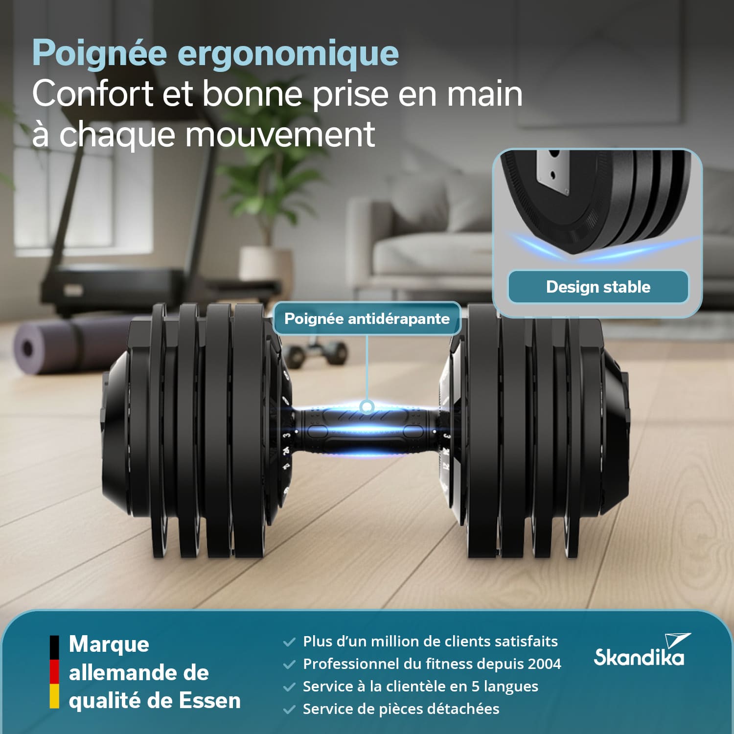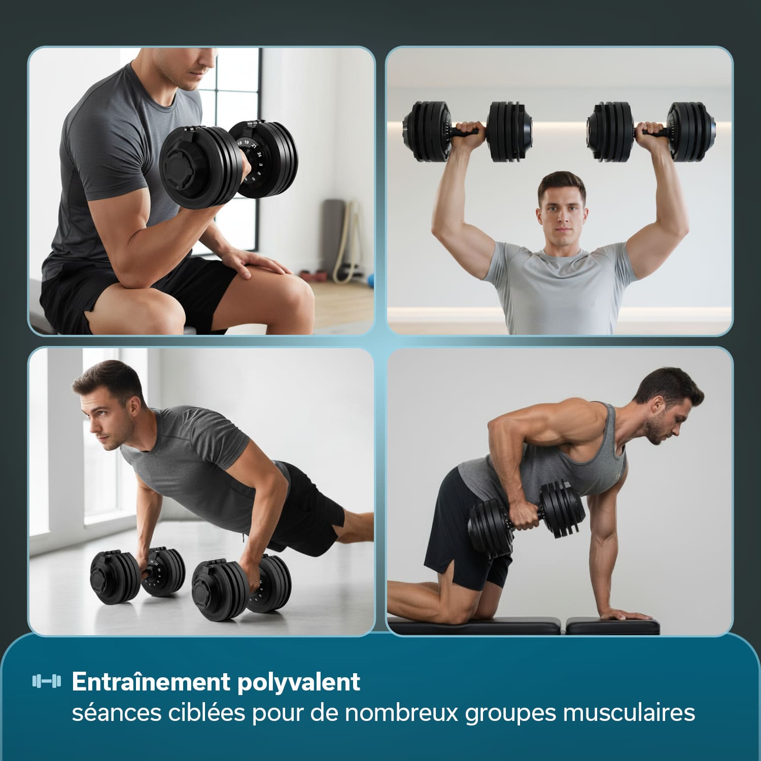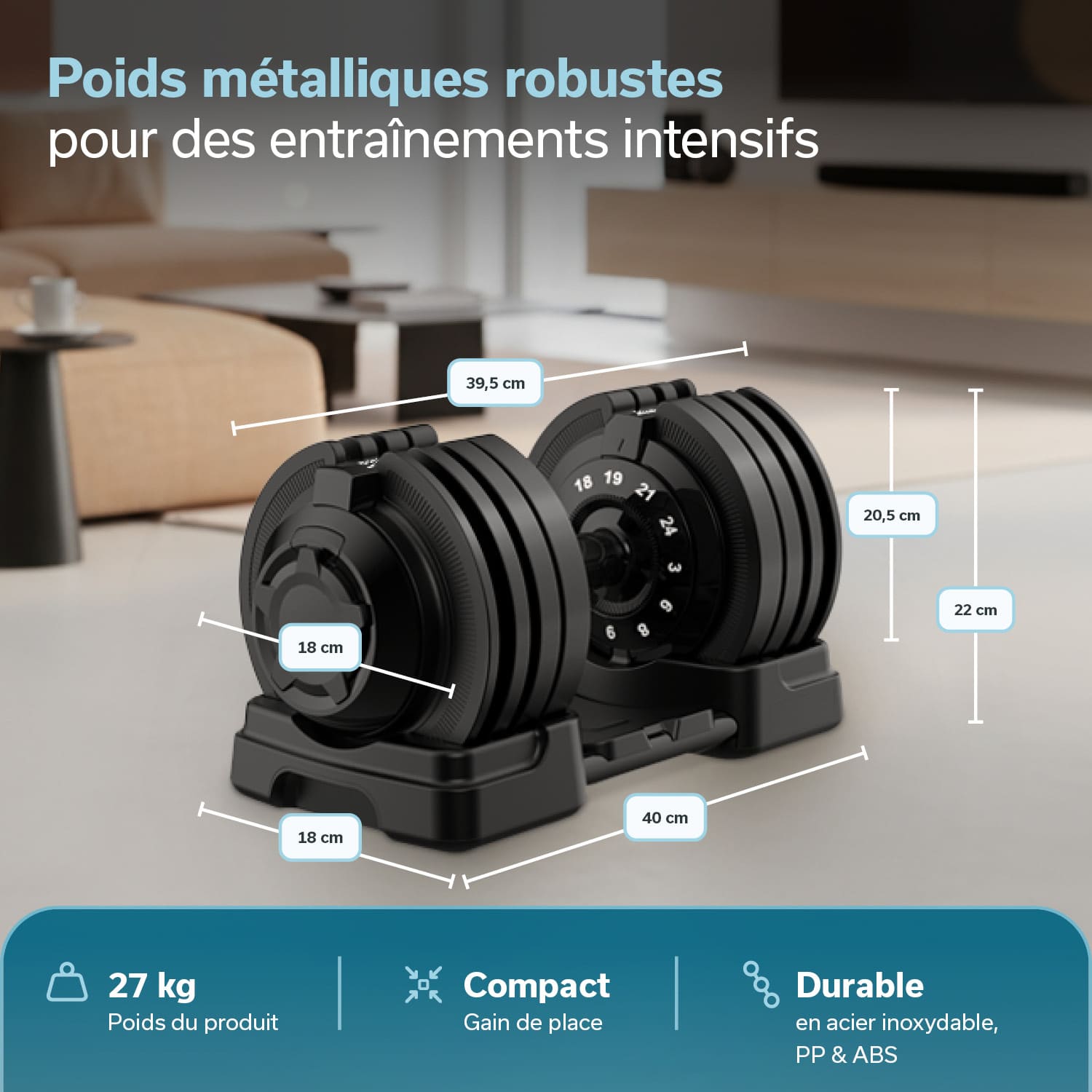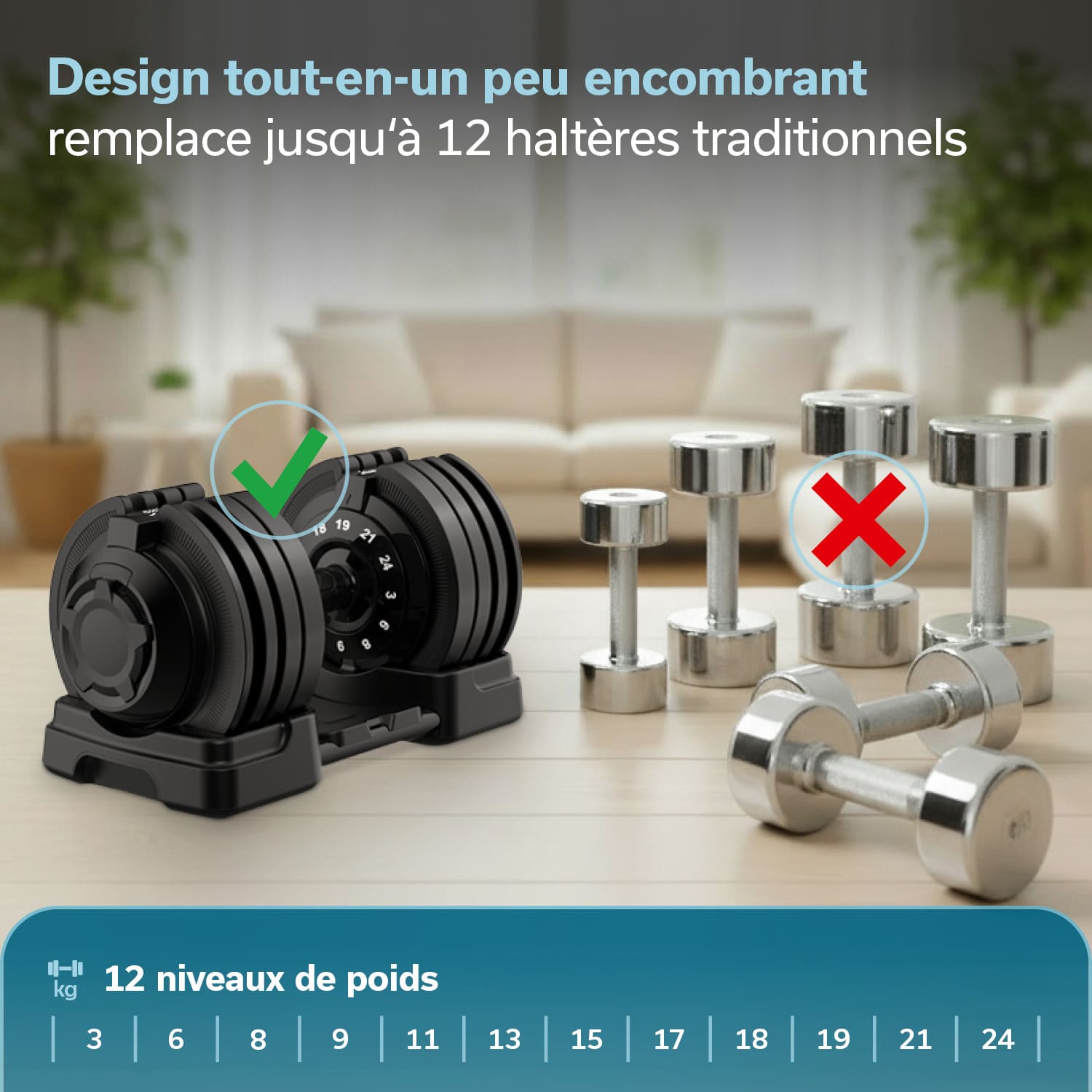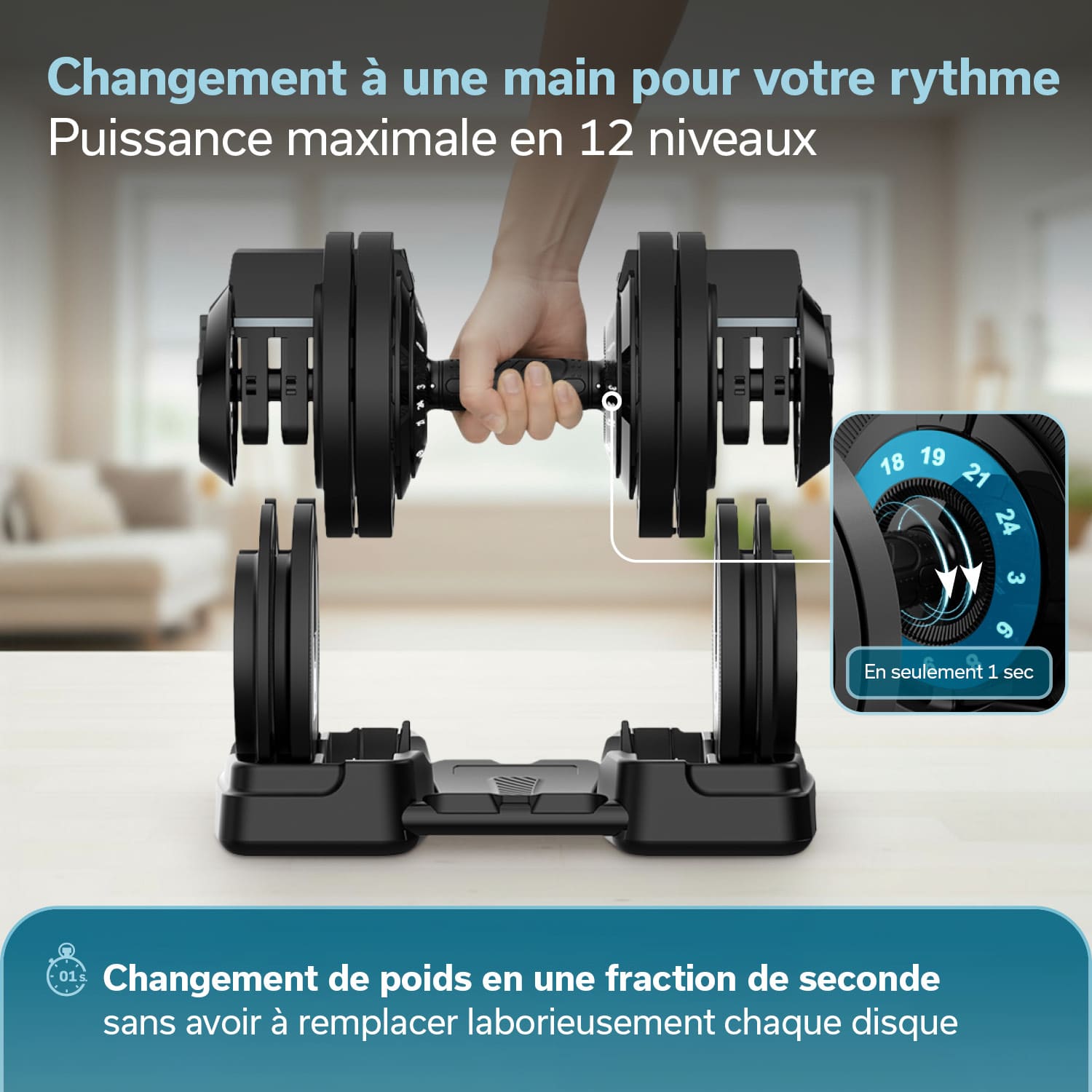 - Verstellbare Hantel mit 12 Gewichtsstufen von 3 kg bis 24 kg für progressives Krafttraining