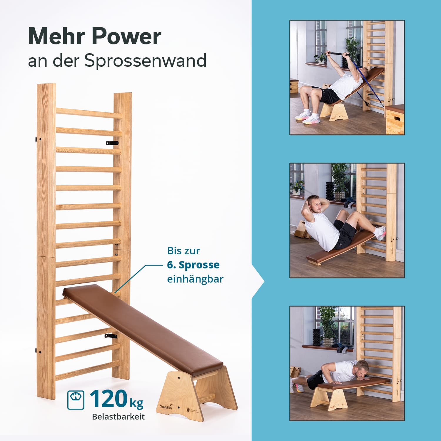 - Kopfende kann ganz einfach in die Vira Sprossenwand (separat erhältlich) eingehängt werden