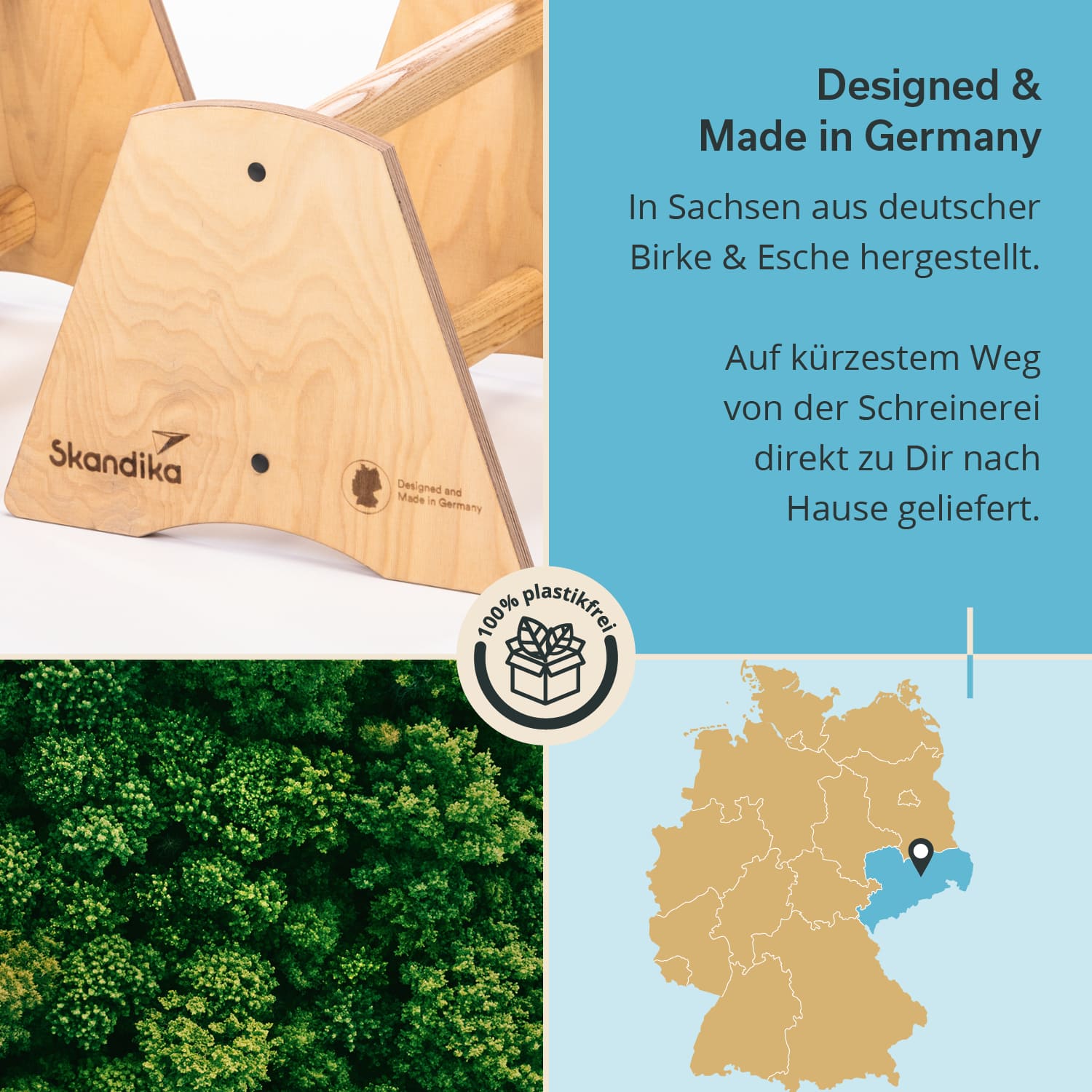 - Gefertigt in deutscher Schreinerei mit Birken- und Eschenholz aus regionaler Forstwirtschaft
