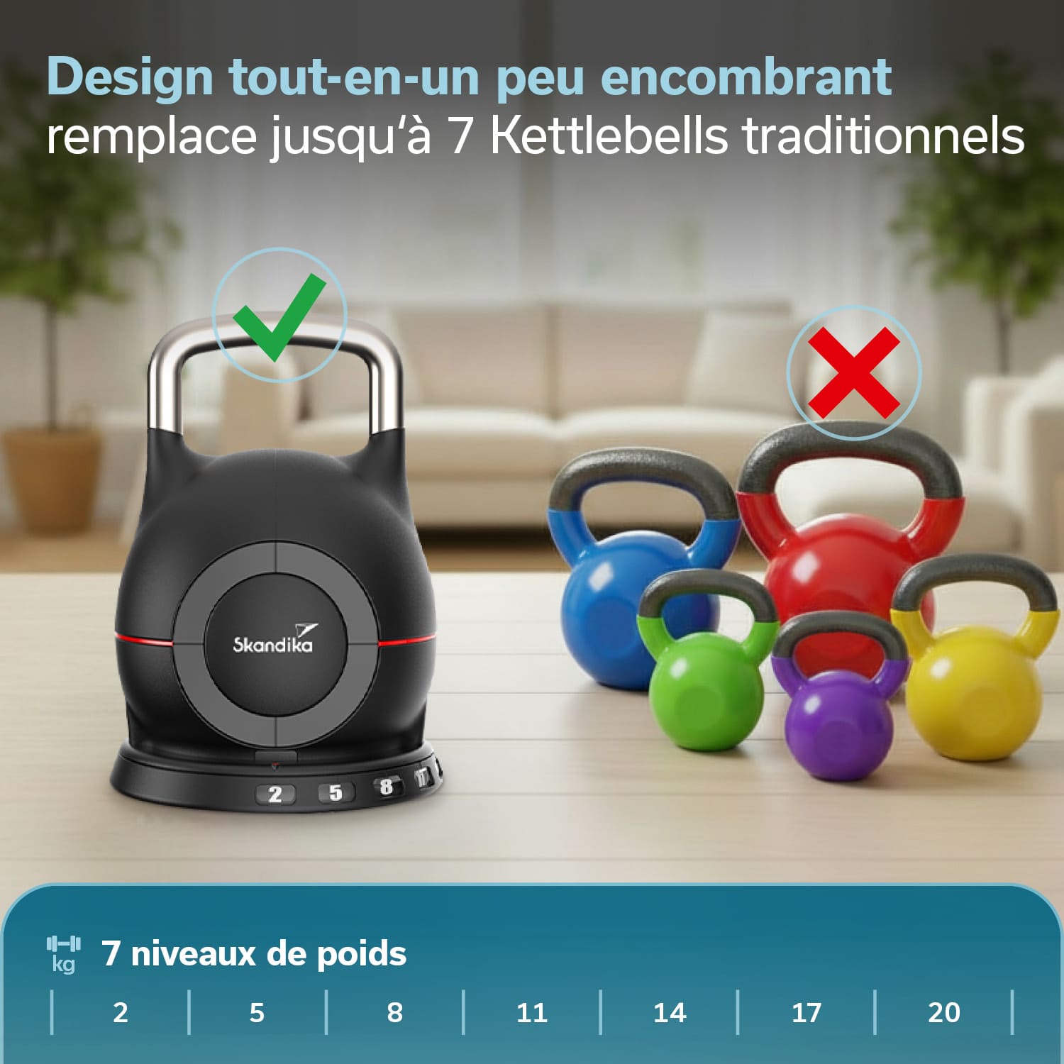 - Verstellbare Kettlebell mit 7 präzisen Gewichtsstufen von 2 kg bis 20 kg für funktionelles Ganzkörpertraining
