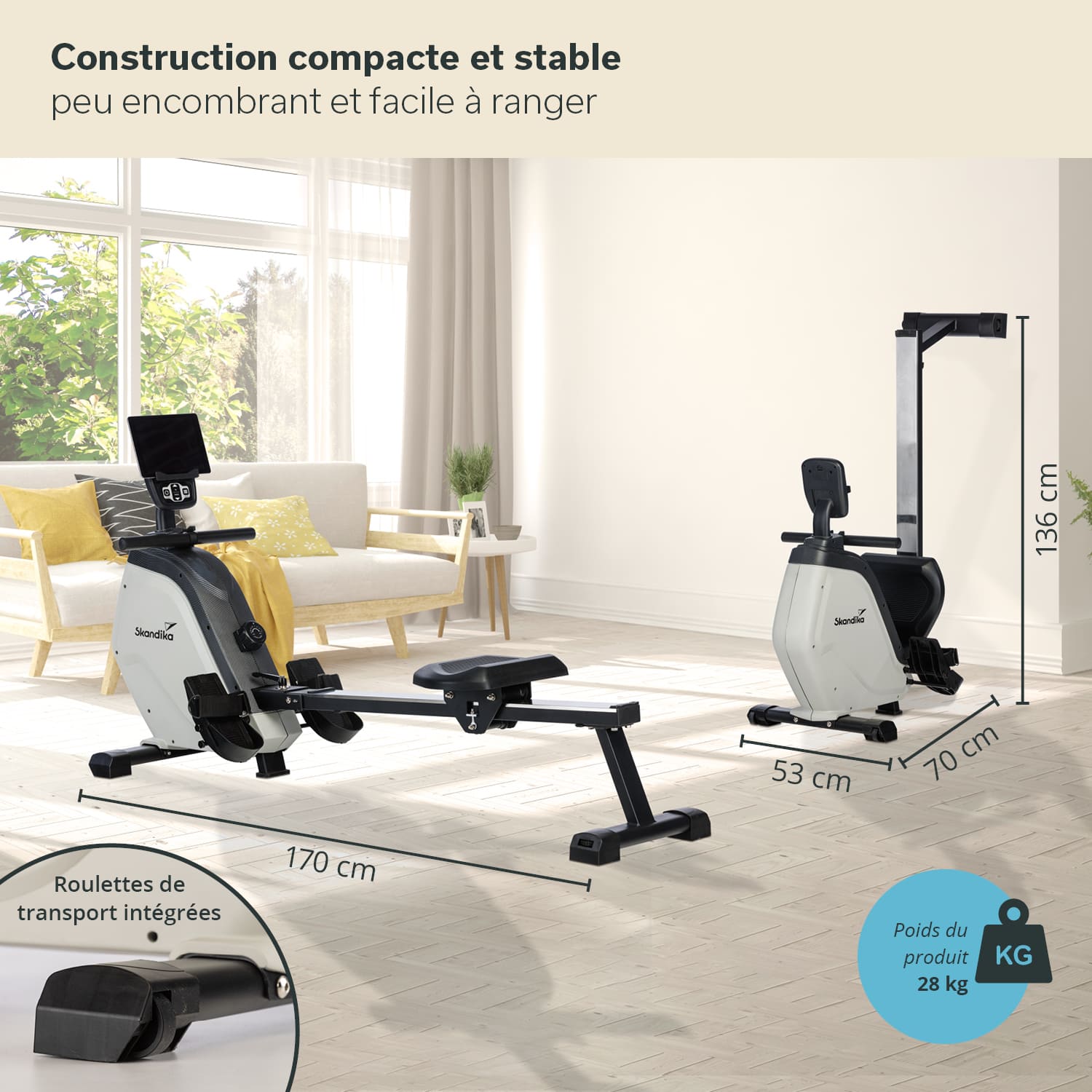 Das Skandika Rudergerät Munin ist der ideale Heimtrainer für ein optimales Ganzkörpertraining zu Hause – gleichermaßen gut geeignet für Anfänger wie Fortgeschrittene. Rudern trainiert gelenkschonend, aber intensiv Oberkörper, Arme, Beine, Bauch und Rücken..