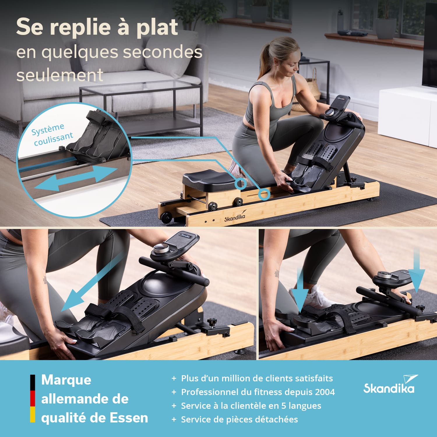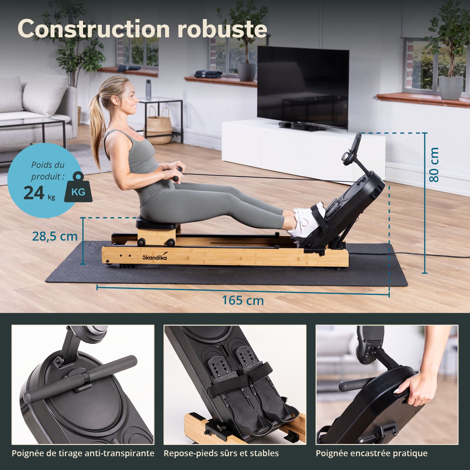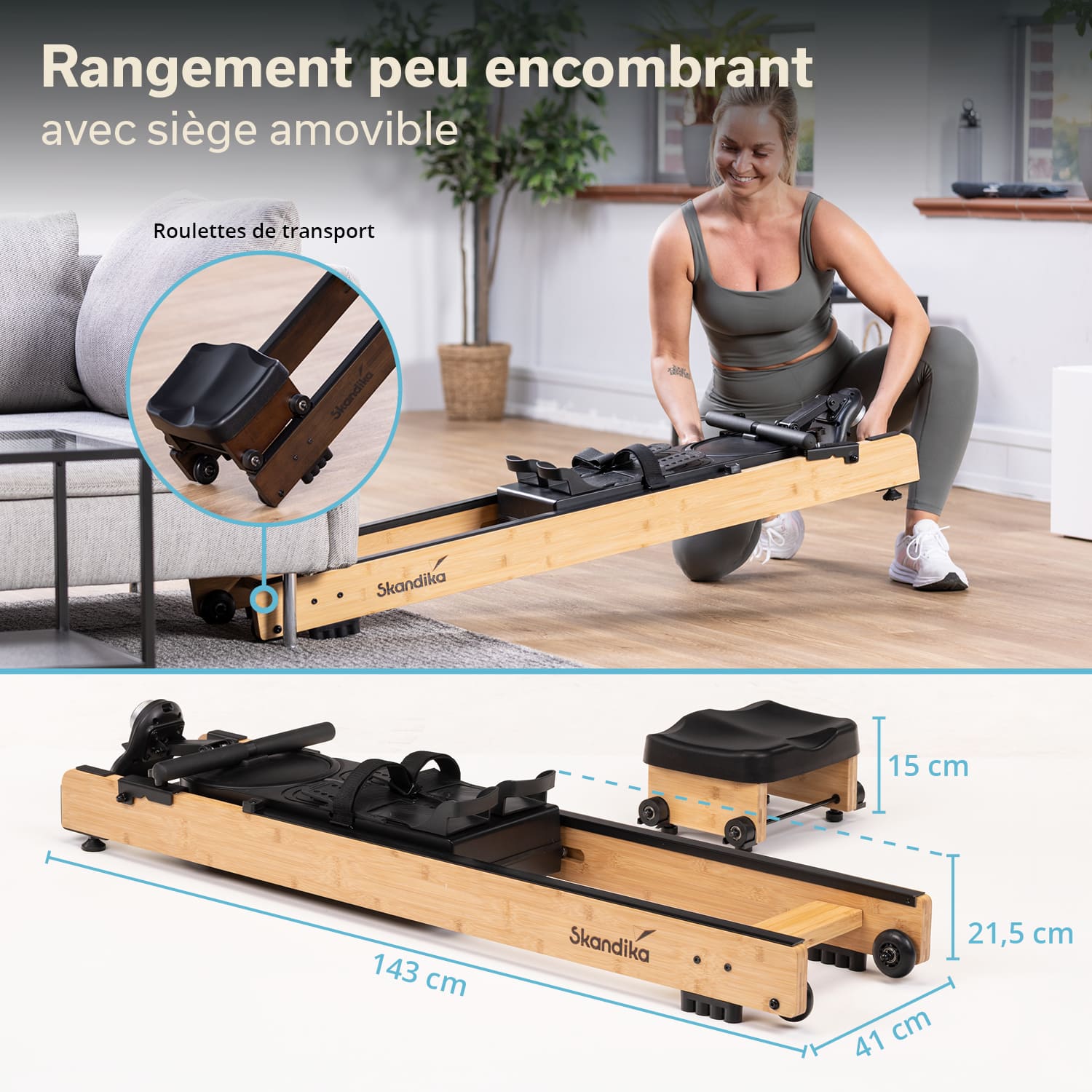 Das Rudergerät Rovek von Skandika ist ein stilvolles und praktisches Gerät für zuhause. Die Holzelemente fügen sich harmonisch in jede Einrichtung ein, und die praktische Klappfunktion sorgt für ein einfaches Verstauen auch auf kleinem Raum. Mit 32 individuell einstellbaren Widerstandstufen bietet diese moderne Rudermaschine immer die richtigen Trainingsvoraussetzungen. Nahezu alle Muskelgruppen werden bei der Ruderbewegung beansprucht, gleichzeitig ist die Bewegung besonders gelenkschonend. So trägt das Training mit Rovek zu einer gesunden und aktiven Lebensweise bei.
