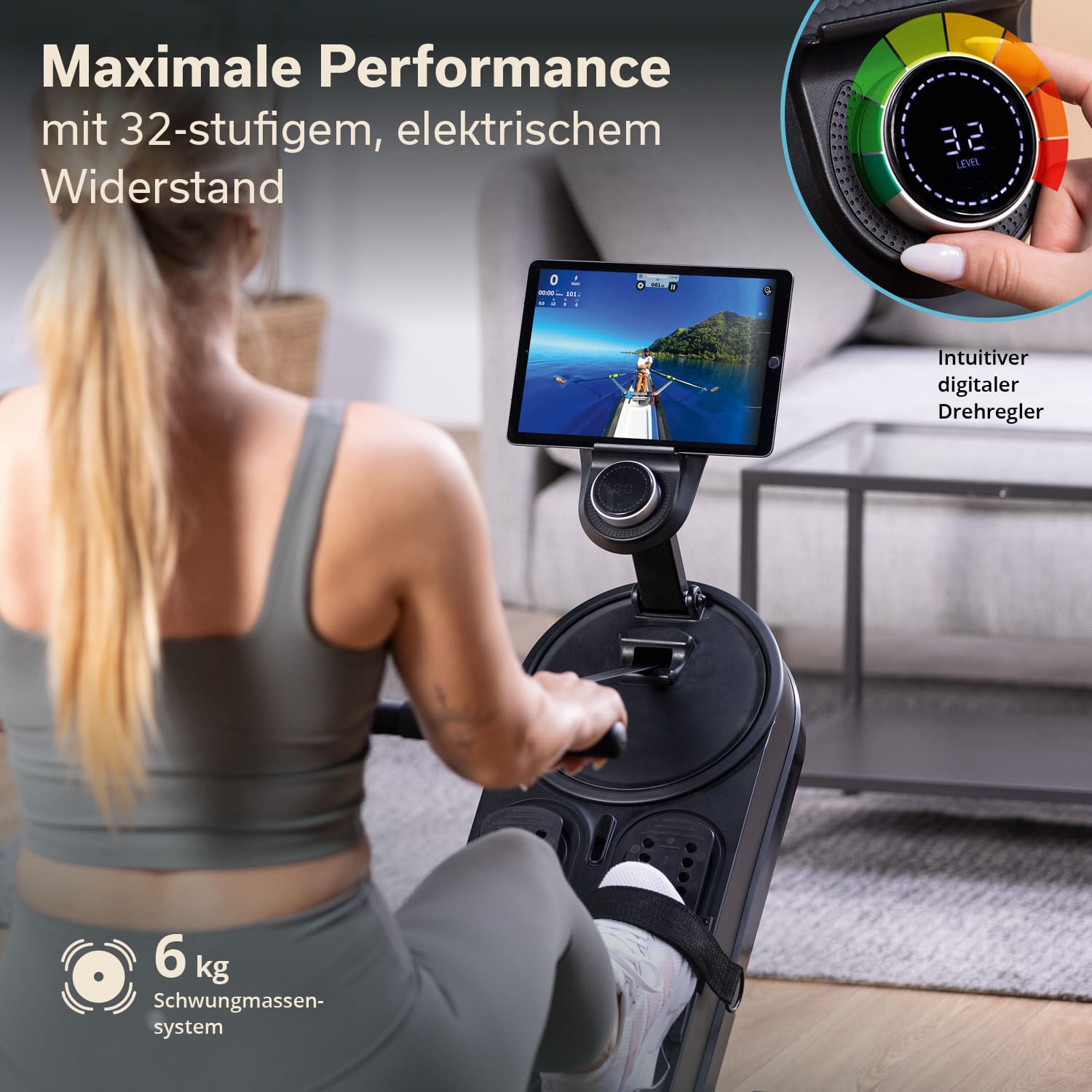 32 elektronisch einstellbare Widerstandsstufen stehen zur Verfügung, sodass sowohl Anfänger als auch Fortgeschrittene effektiv trainieren können.