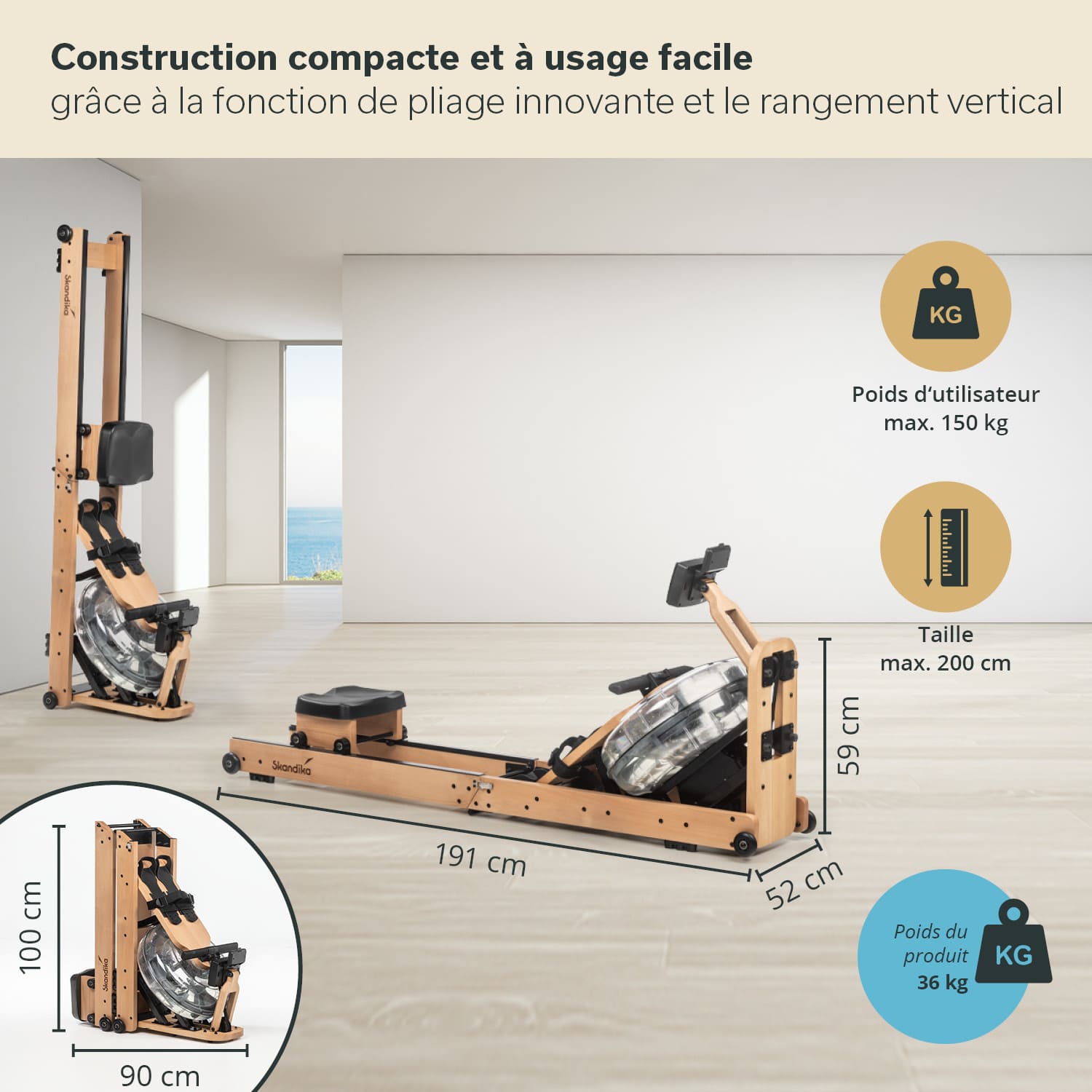 Das Nytta besticht nicht nur durch seine praktischen Funktionen, sondern auch durch das wunderschöne Holzmaterial. Aus dem europäischen Buchenholz gefertigt, schmückt das Rudergerät jeden Raum – ob ein voll ausgestatteter Sportkeller oder das gewöhnliche Wohnzimmer.