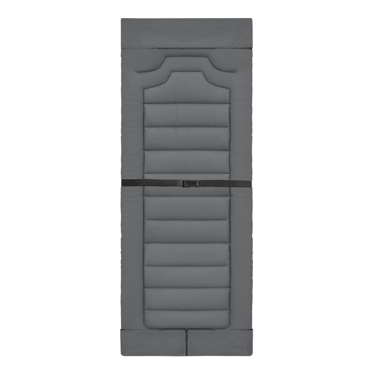 Die praktische Ausstattung der Auflage umfasst einen Gurt mit Klickverschluss, der ein Verrutschen der Auflage auf einer Liege verhindert und Stofftaschen am Kopf- und Fußende auf der Unterseite, in welche die Liege für einen sicheren Halt eingehakt wird. Die Stofftasche am Fußende besitzt zusätzlich einen Reißverschluss, um das Aufspannen der Auflage zu vereinfachen. Mit einem Gewicht von nur 1,28 kg, einem kompakten Packmaß von 23 × 23 × 36 cm und dem mitgelieferten Packsack lässt sich die Auflage leicht transportieren und verstauen.