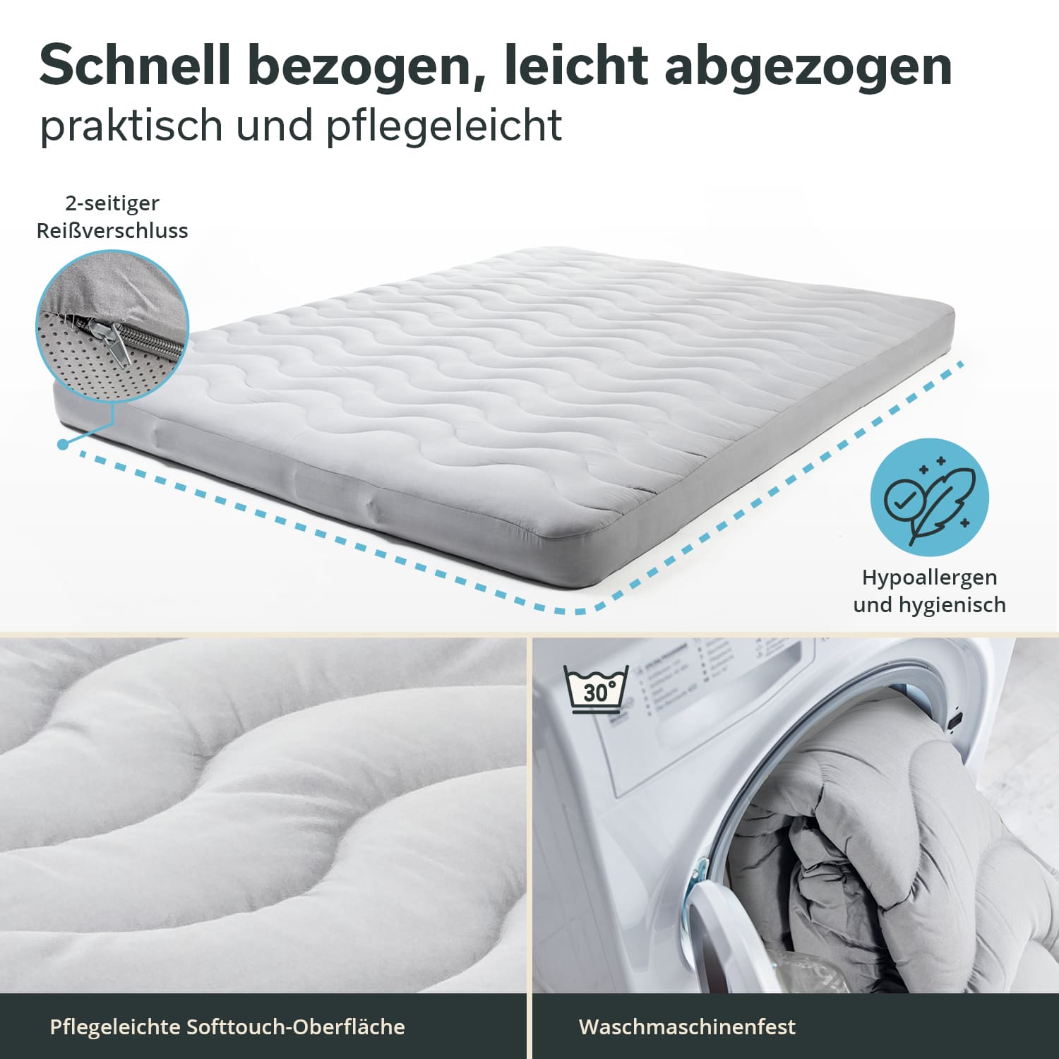 - Atmungsaktiv, antibakteriell, hypoallergen – für ein angenehmes Schlafklima in jeder Situation