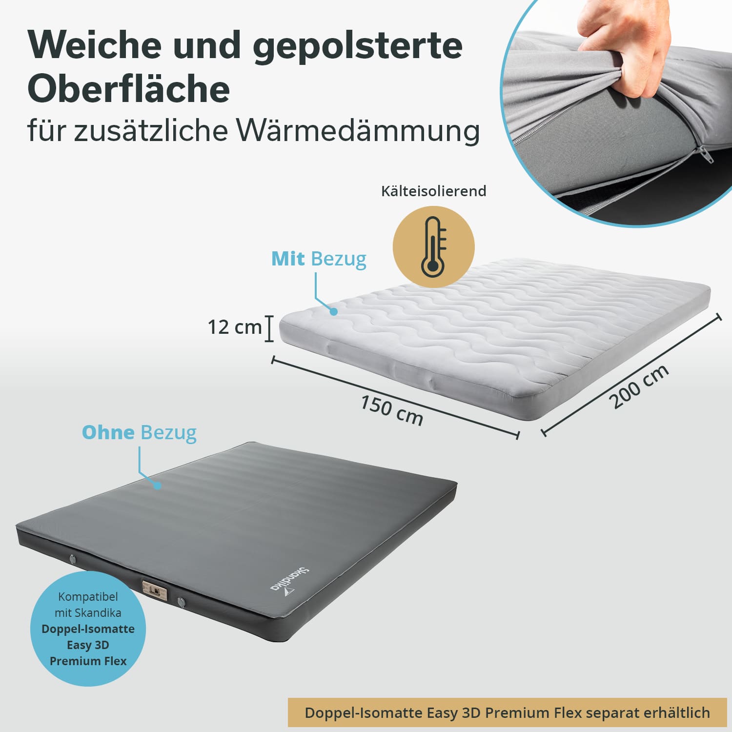 Dieser Bezug ist passgenau für die Skandika Doppel-Isomatte Easy 3D Premium Flex, die im Skandika Shop separat erhältlich ist.