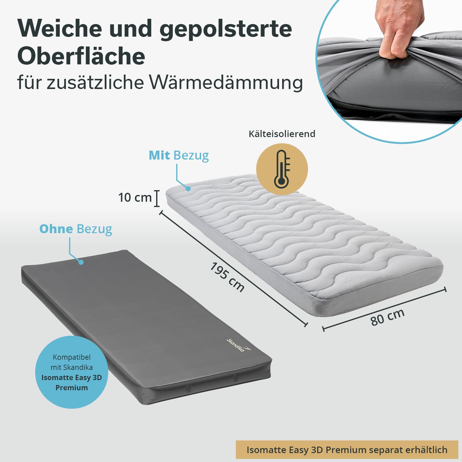 Dieser Bezug ist passgenau für die Skandika Isomatte Easy 3D Premium, die im Skandika Shop separat erhältlich ist.
