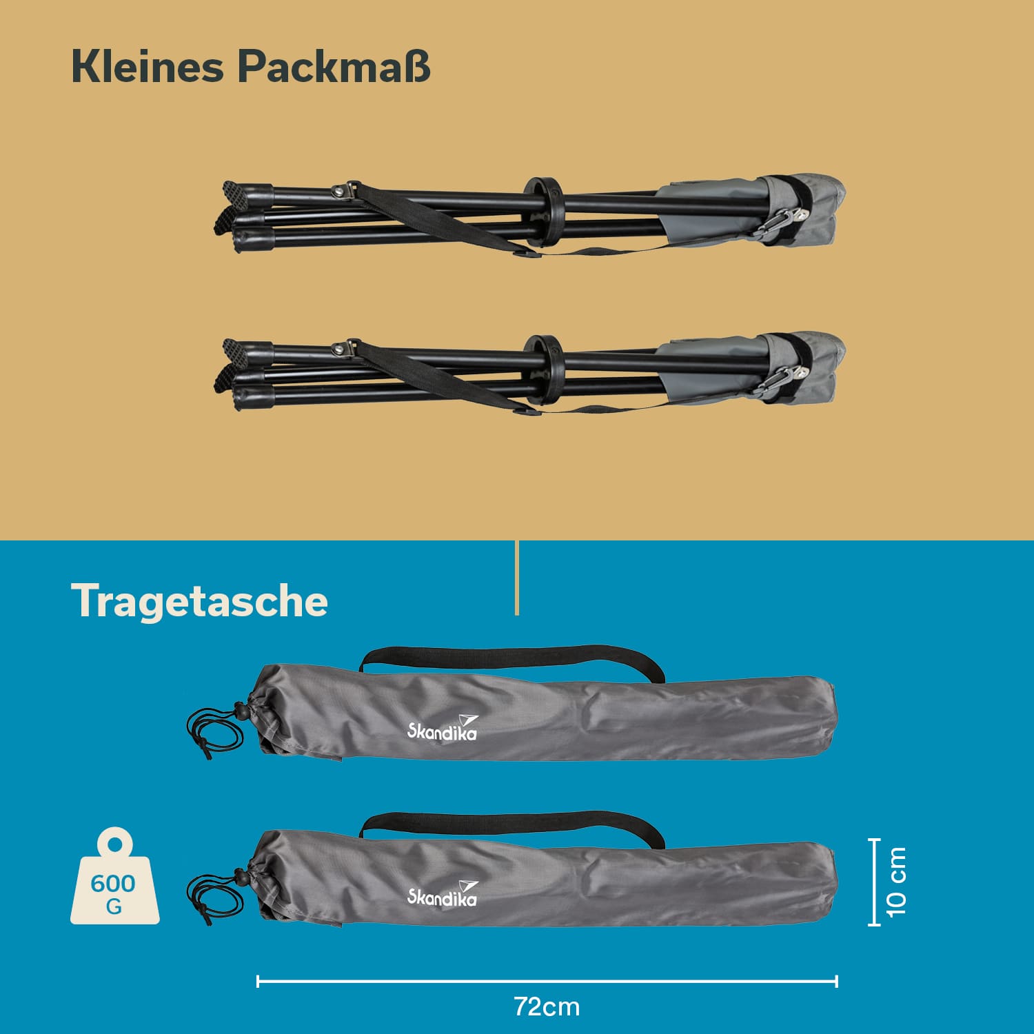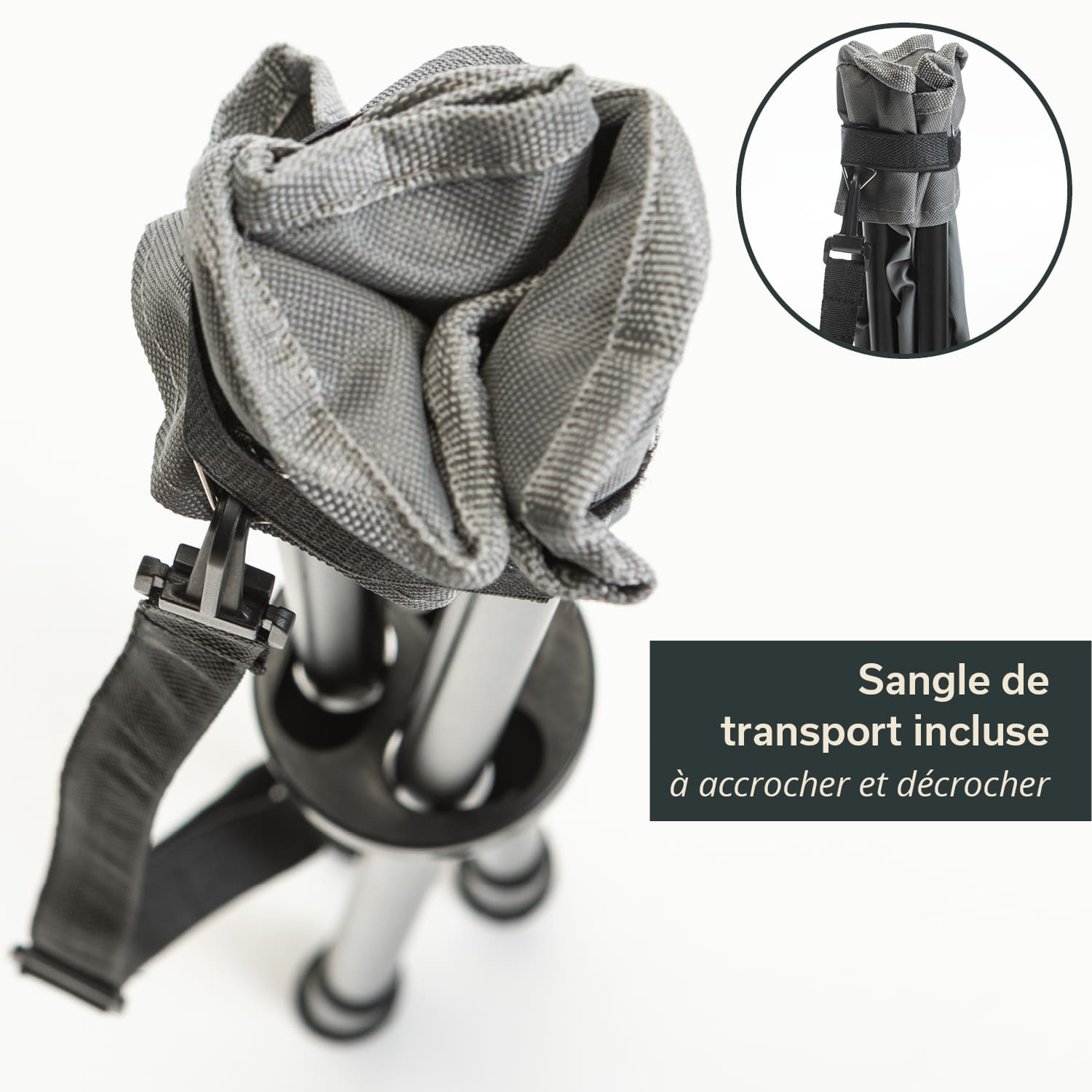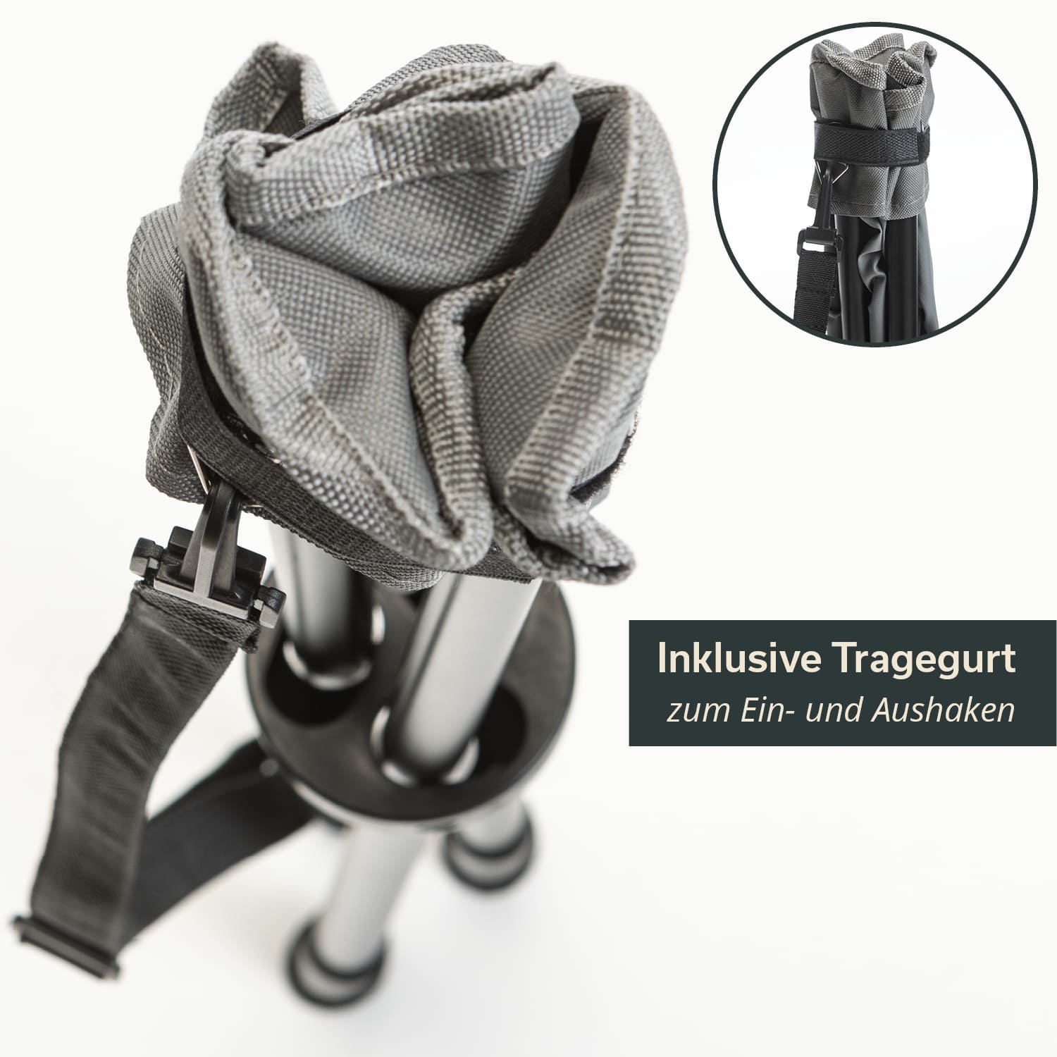 Ein praktischer Schultergurt und ein Bindeband mit Klett und Karabinerhaken sind fest am Hocker befestigt, damit er auch im zugeklappten Zustand ruck-zuck und kinderleicht getragen oder auf dem Fahrrad oder am Rucksack befestigt werden kann. Die robuste Tragetasche mit Griff ist jedoch perfekt für den Transport im Auto geeignet und garantiert zudem eine staubfreie Lagerung im Keller oder in der Garage bis zum nächsten Einsatz.
