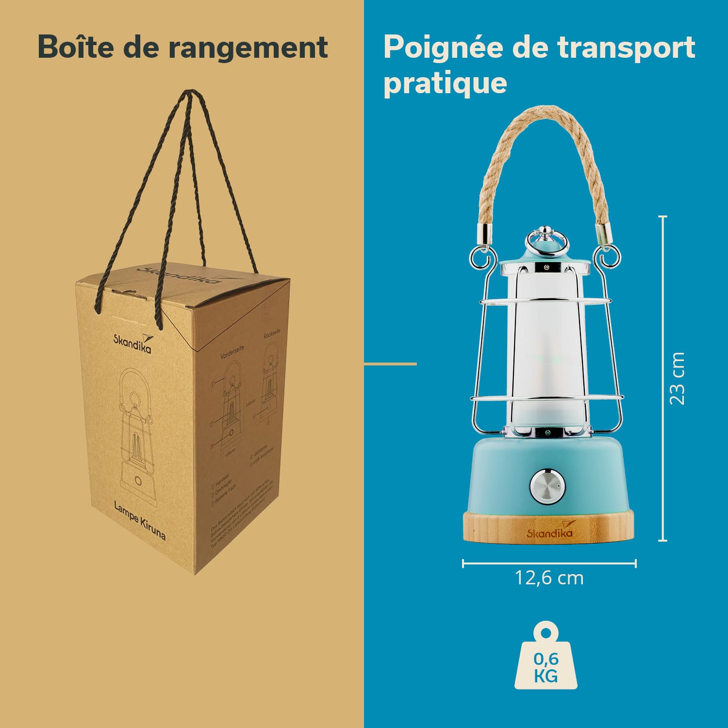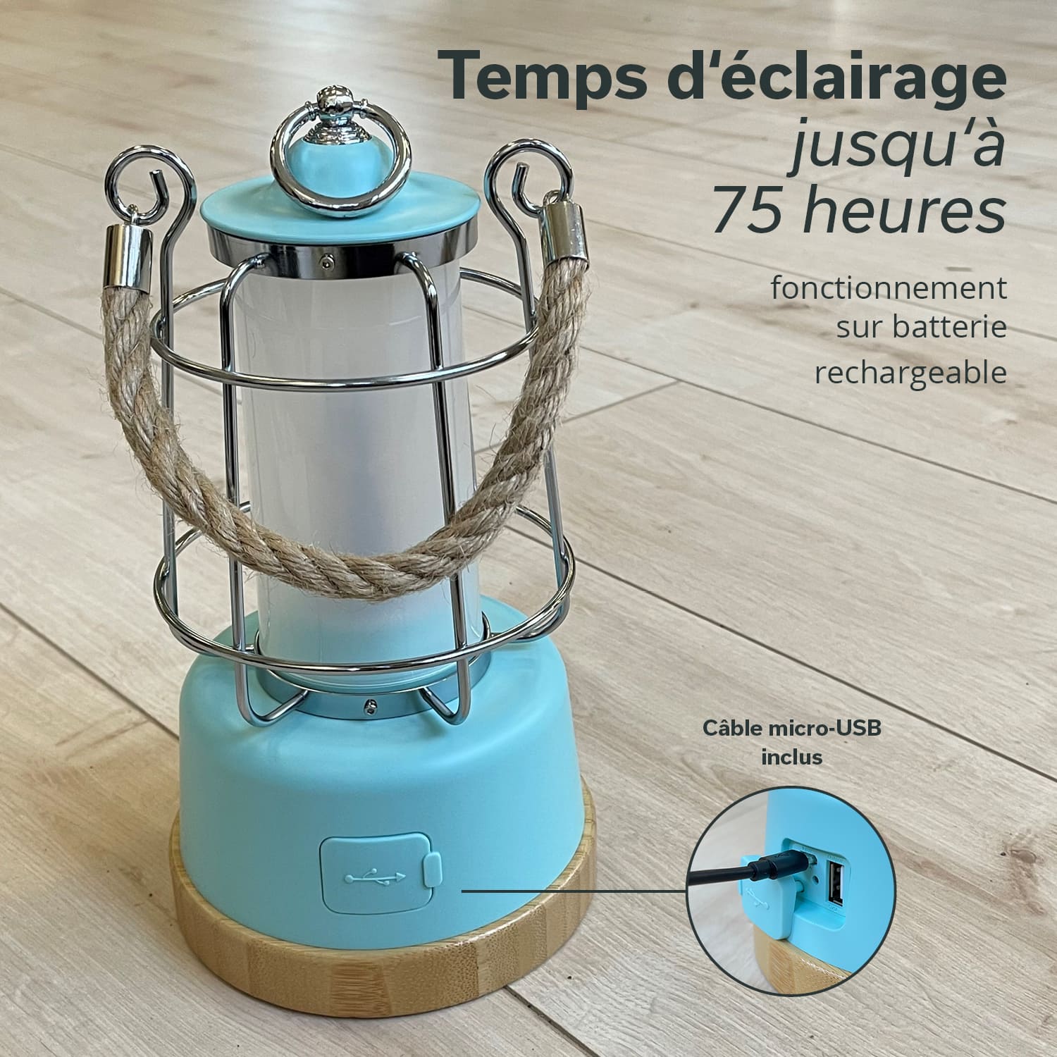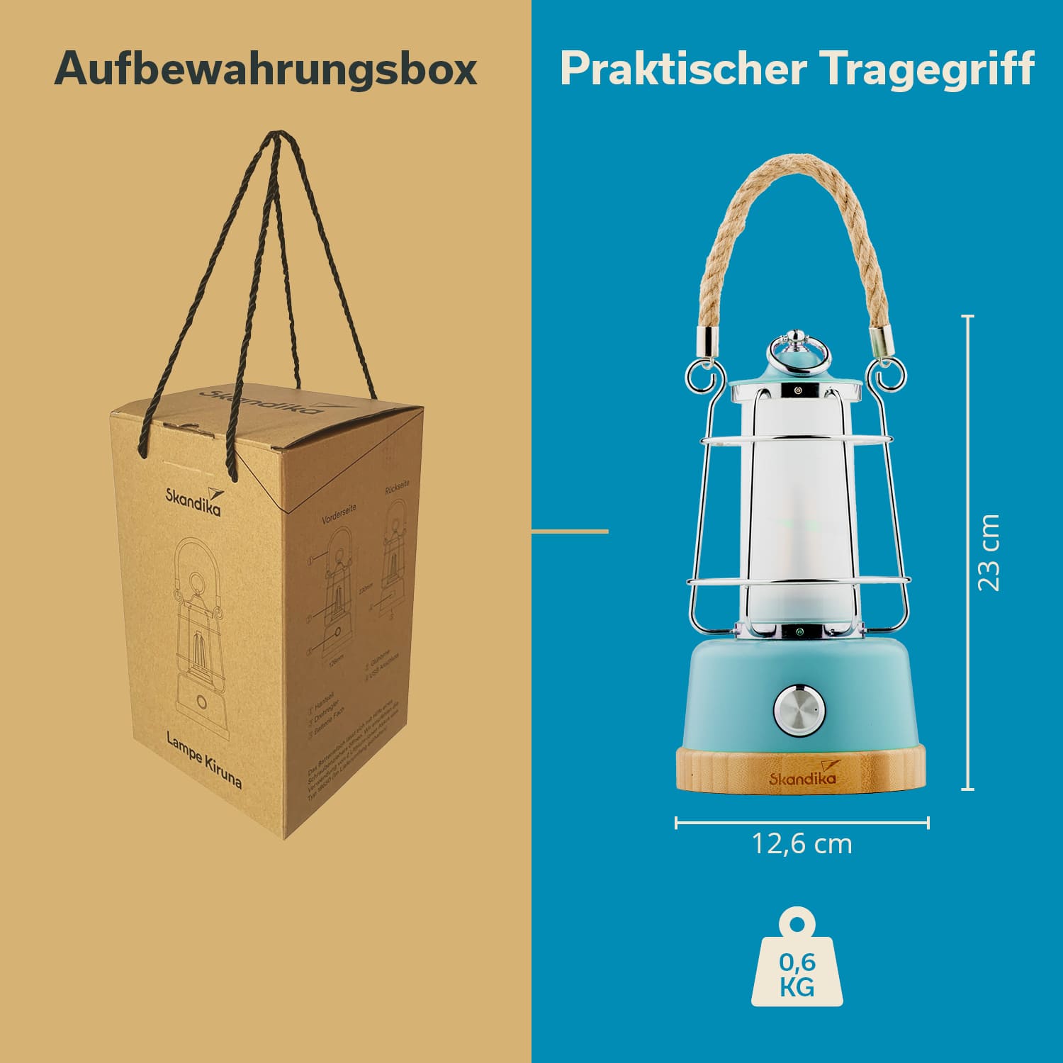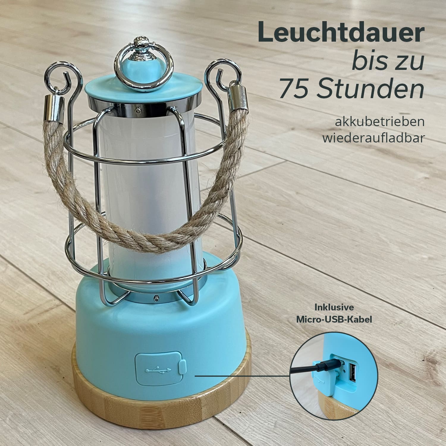 Das Hanfseil als auch der Bambussockel lassen die Laterne einerseits besonders stylisch aussehen, begünstigen andererseits aber auch ihre Langlebigkeit. Zudem ist sowohl Hanf als auch Bambus ein nachwachsender, nachhaltiger und ressourcenschonender Werkstoff.