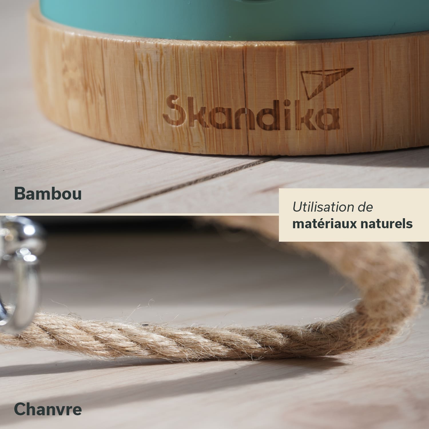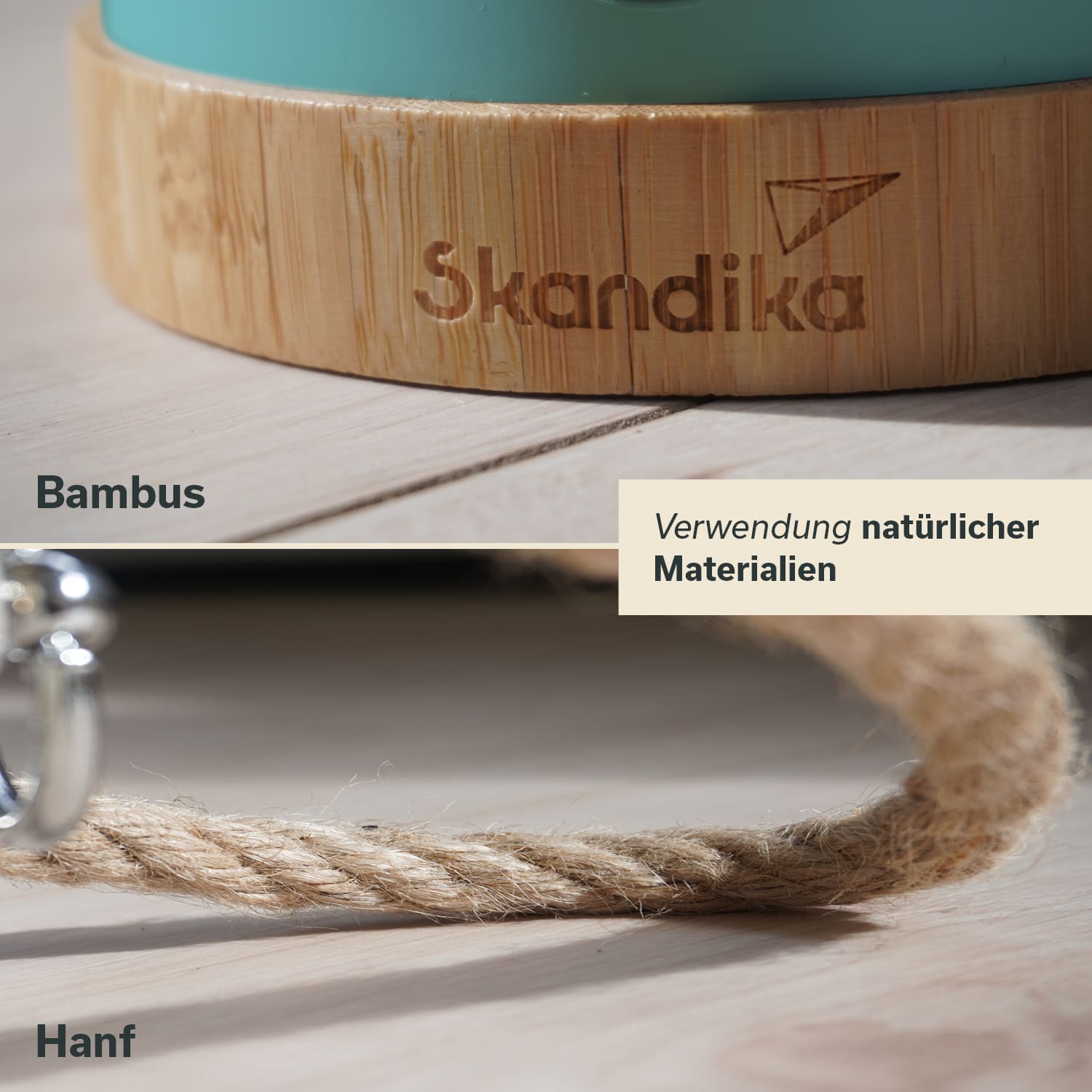 - Stylisches Design mit Bambus und Hanfseil