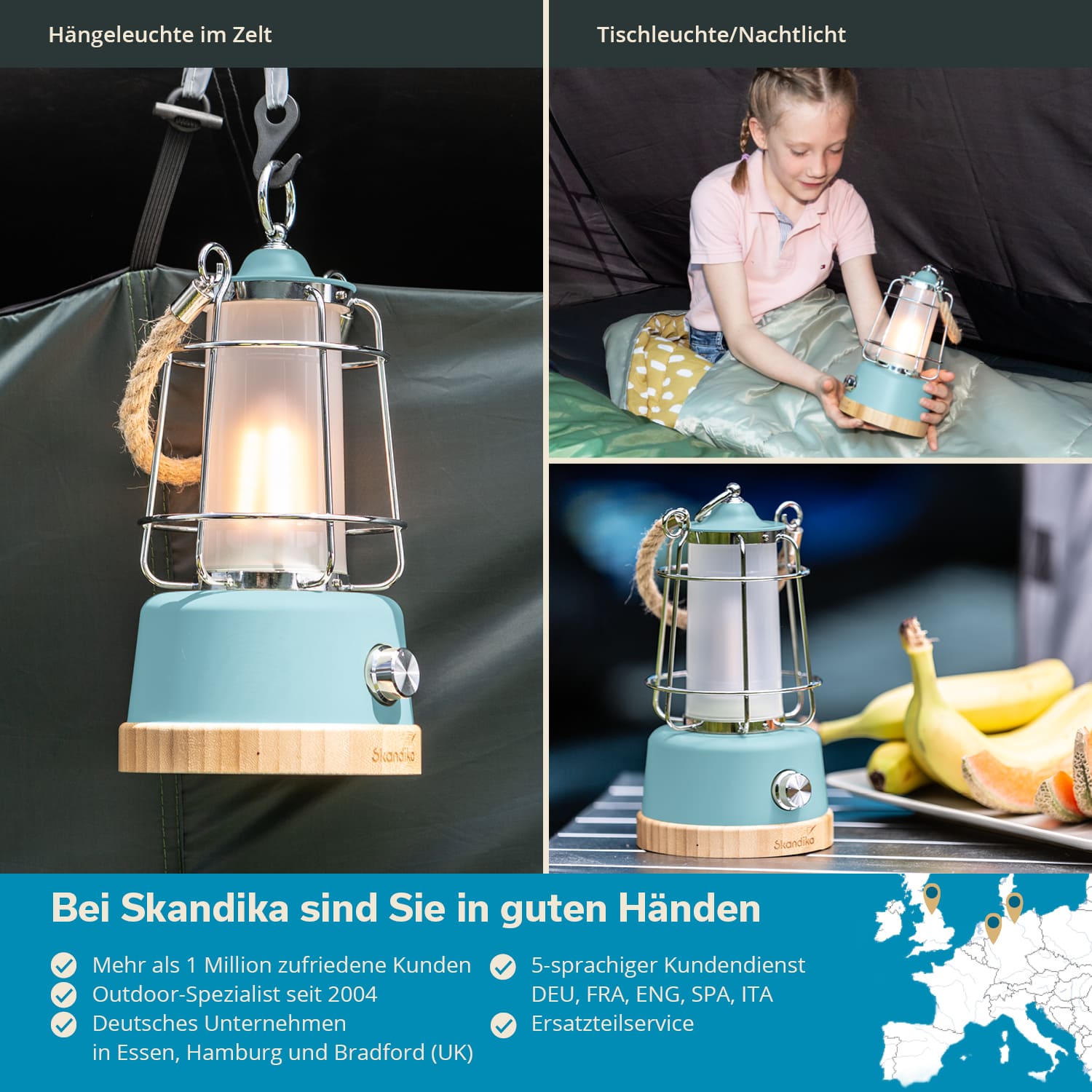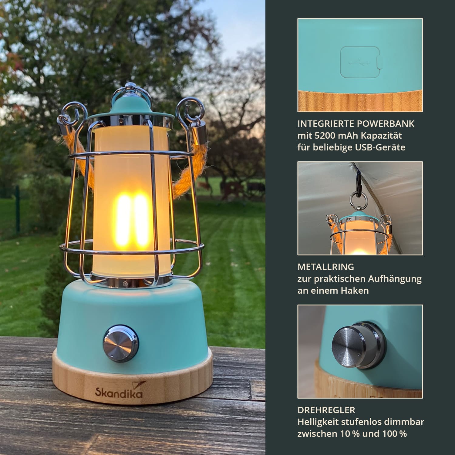 - Leuchtkraft bis zu 370 Lumen lässt auch größere Zelte hell erstrahlen