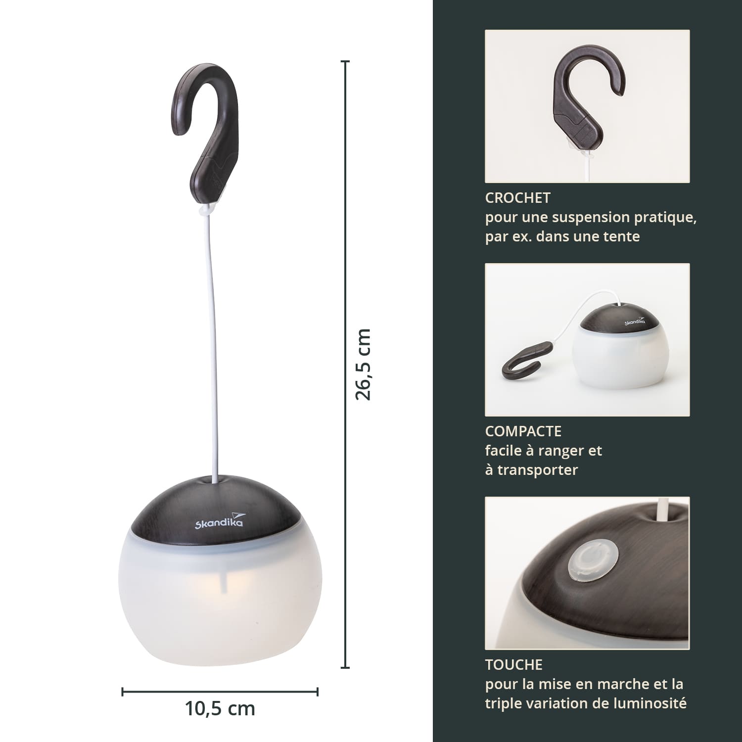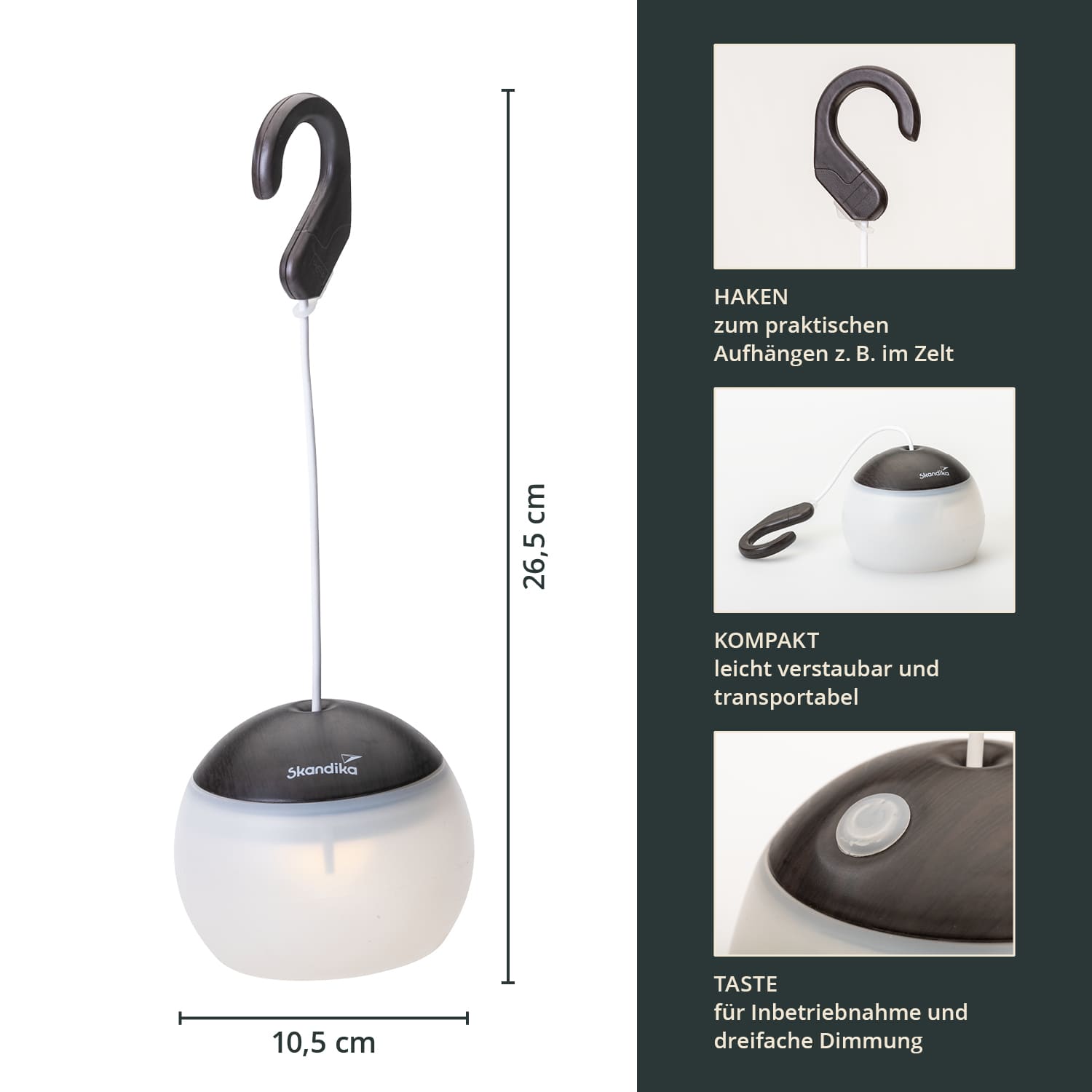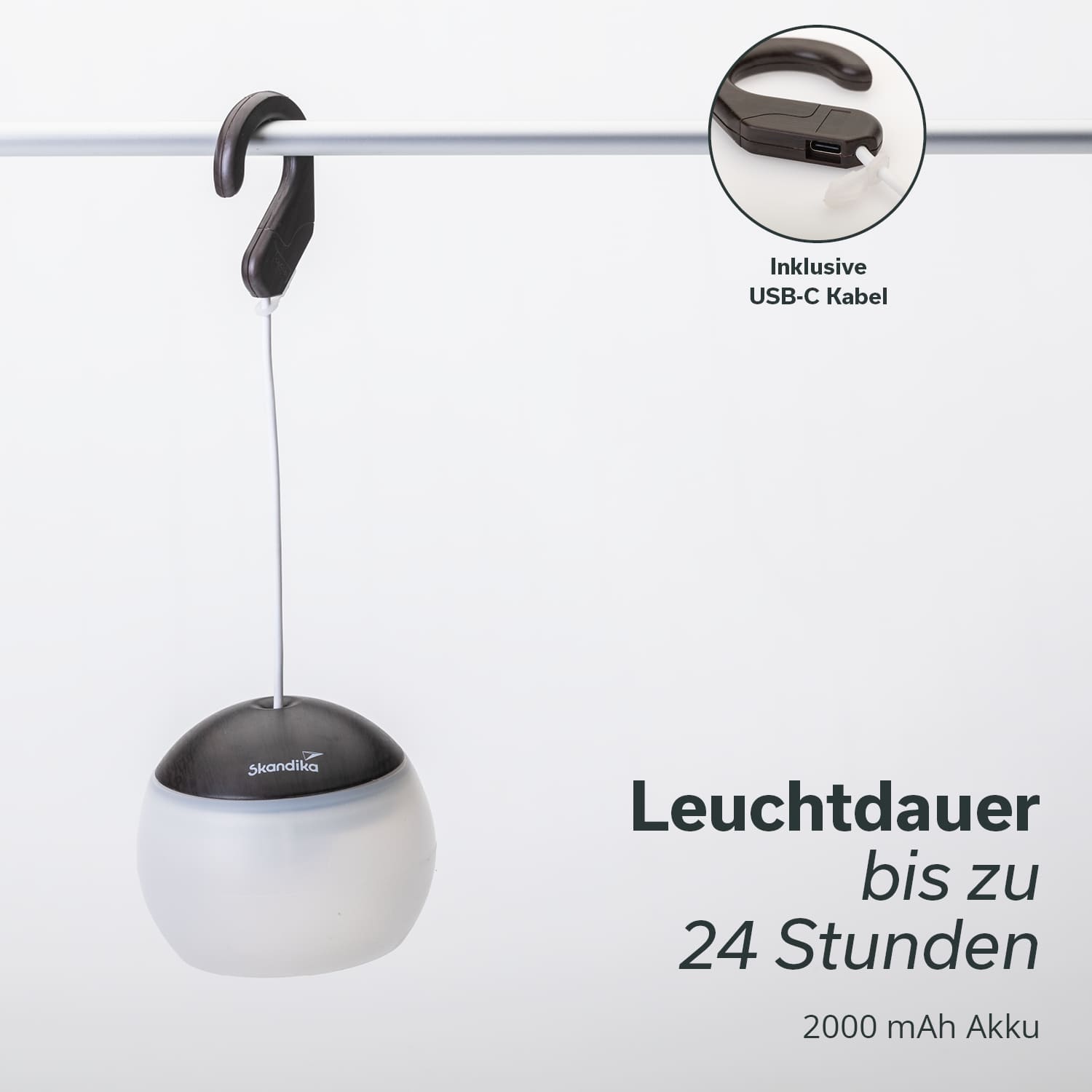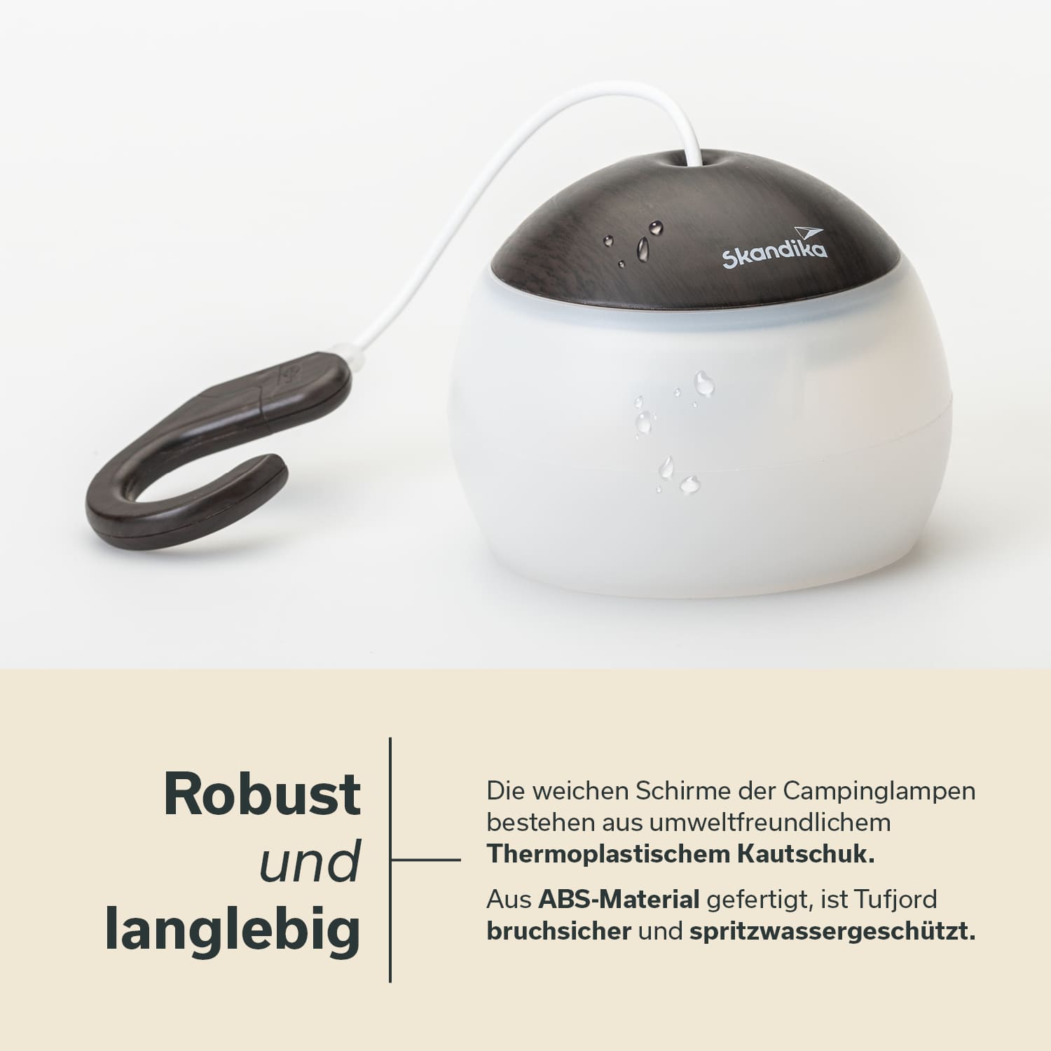 Die kleine, leichte und extrem pfiffige Skandika Campinglampe Tufjord ist perfekt für Outdoor-Abenteuer jeglicher Art. Aufladbar über USB-C Anschluss und je nach Helligkeitsstufe mit bis zu 24 Stunden Betriebszeit, sollte die Lampe auf keinem Campingausflug fehlen.