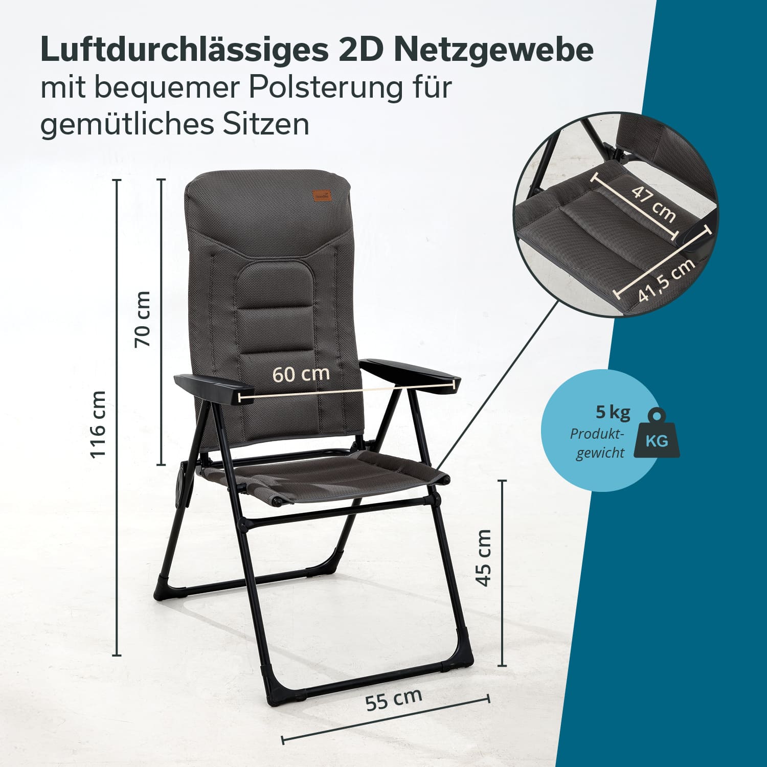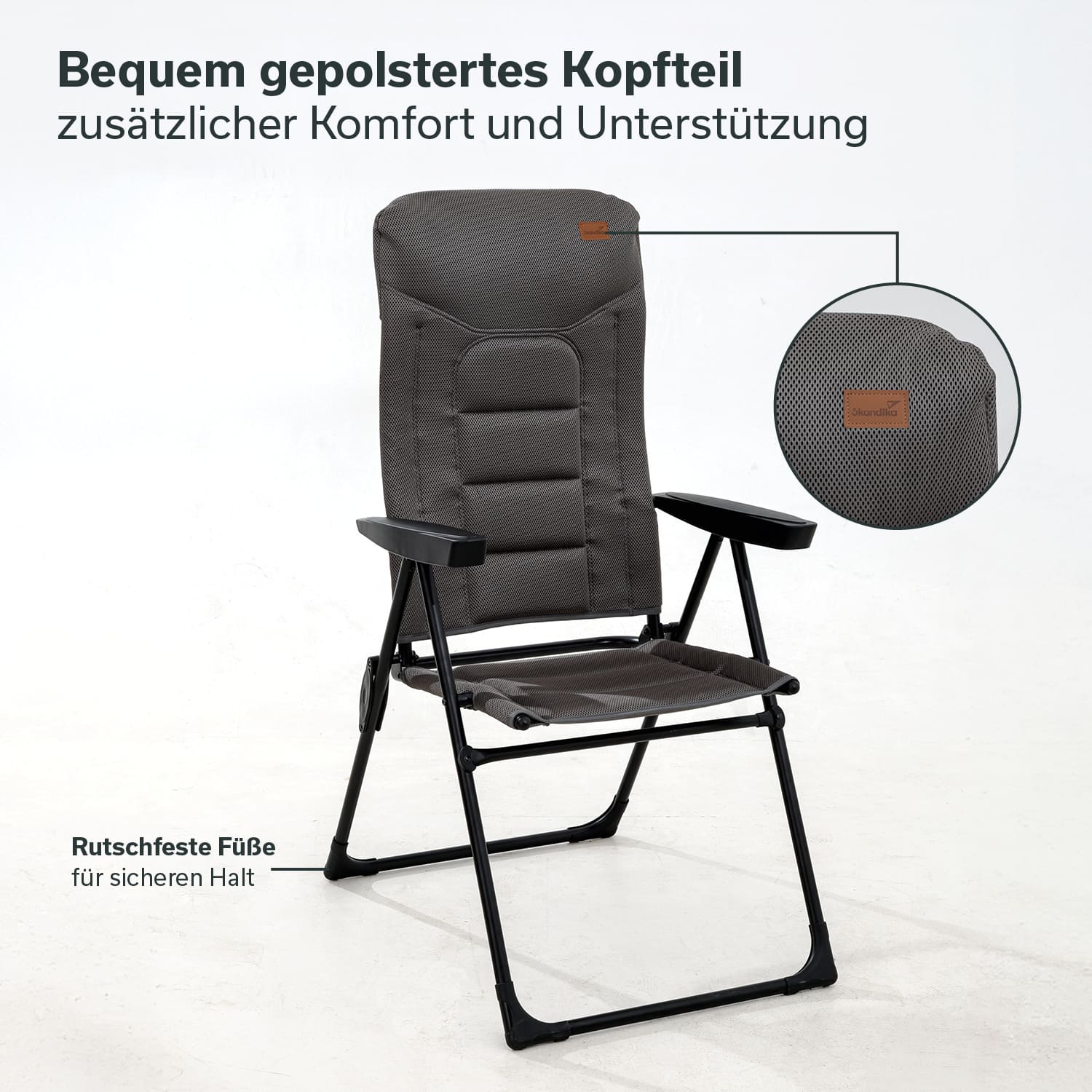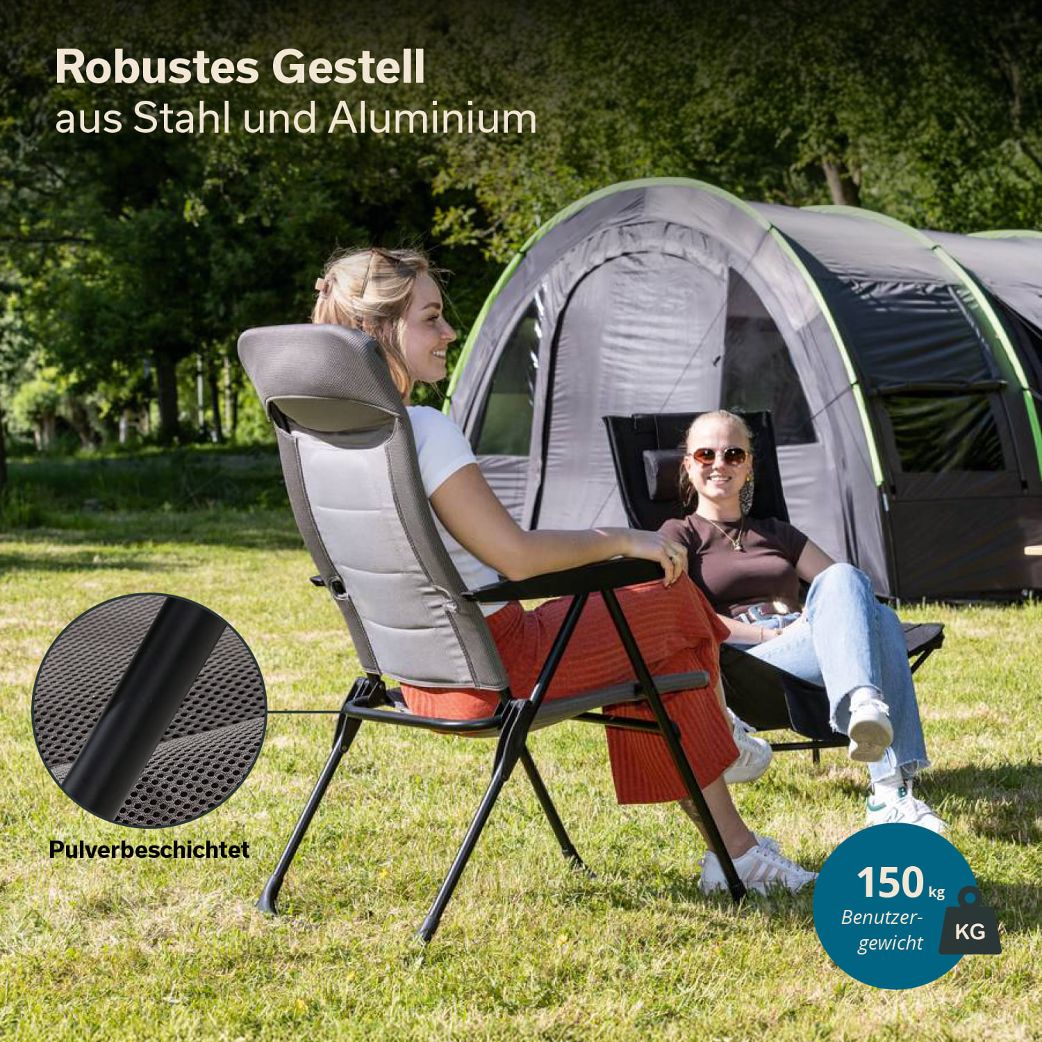 - Bequemer Hochlehner Camping-Klappstuhl für viel Komfort und Stabilität
