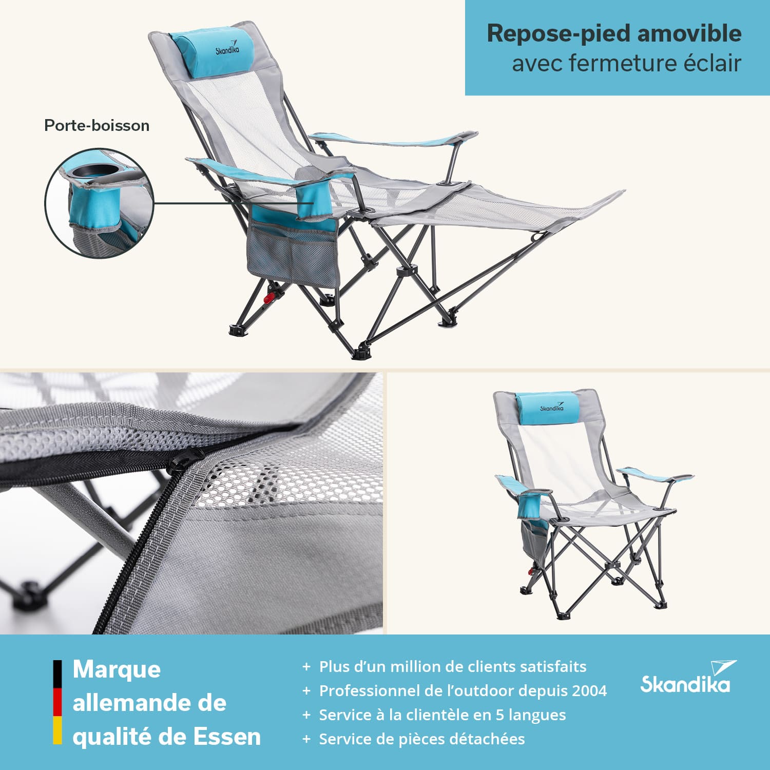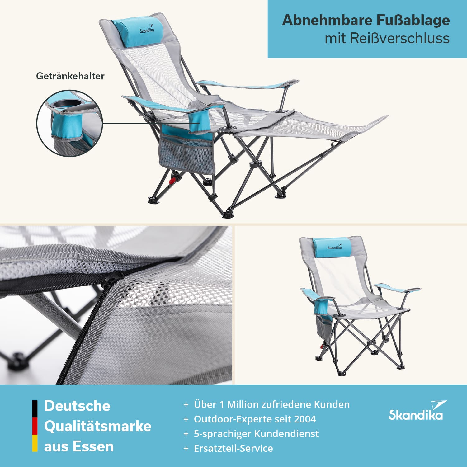 • Superbequeme Fußablage für müde Beine. Mittels Reißverschluss bei Bedarf abnehmbar