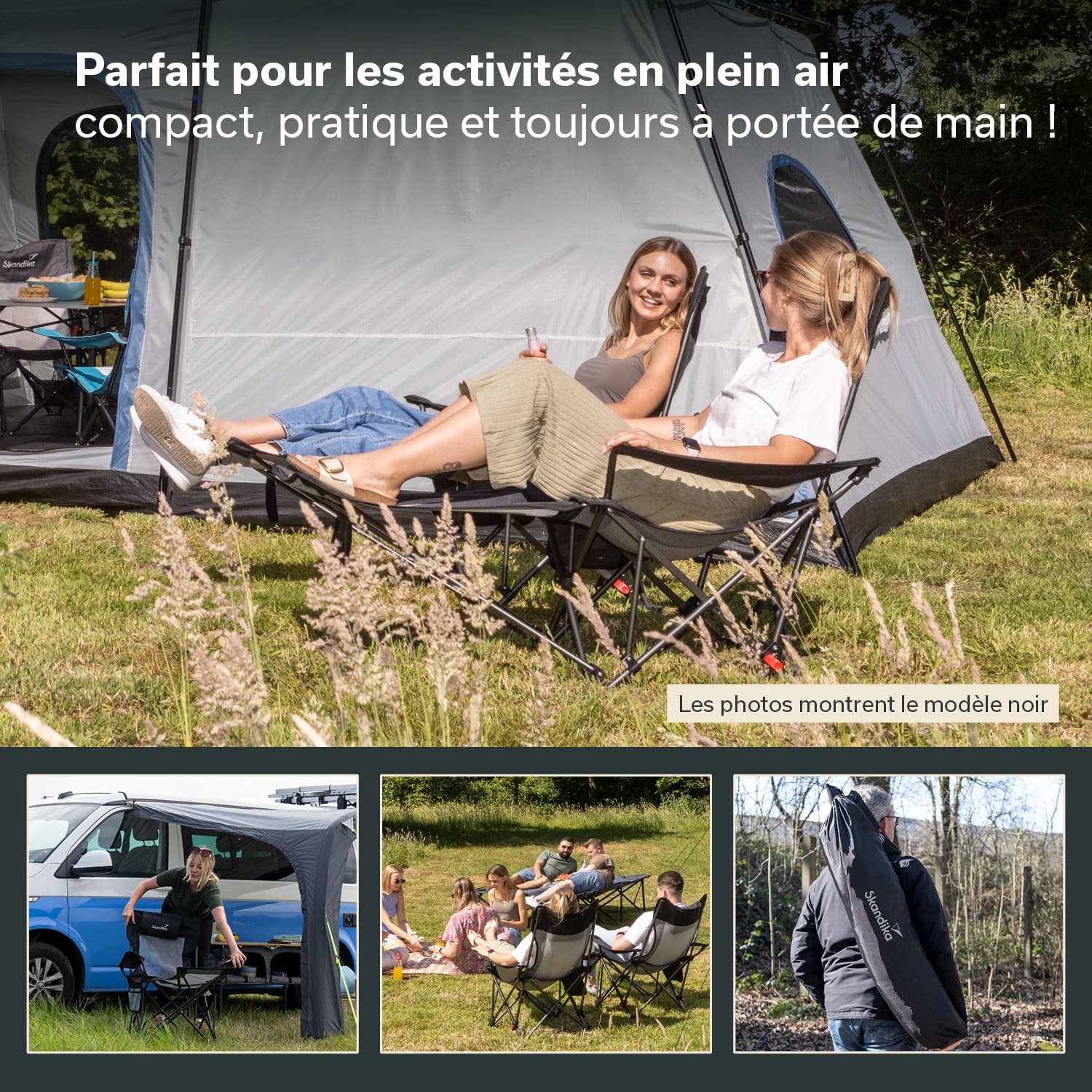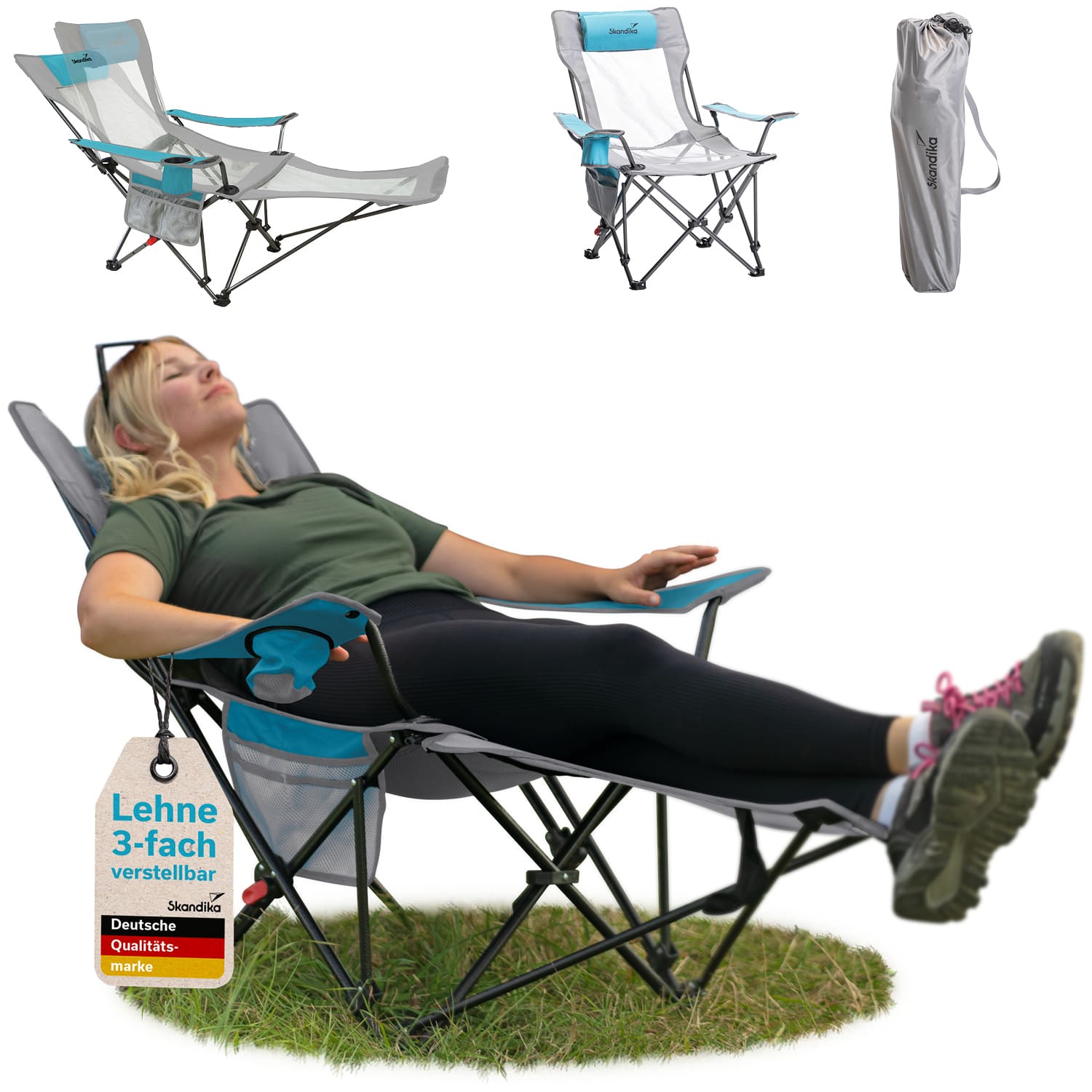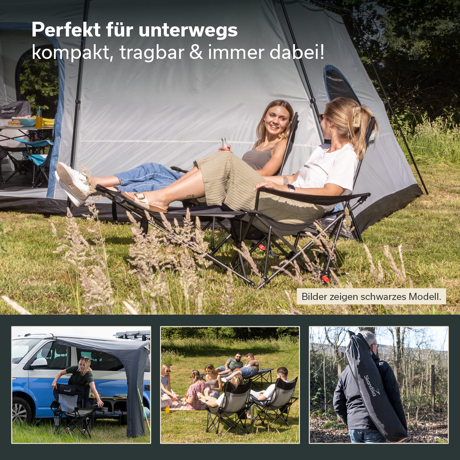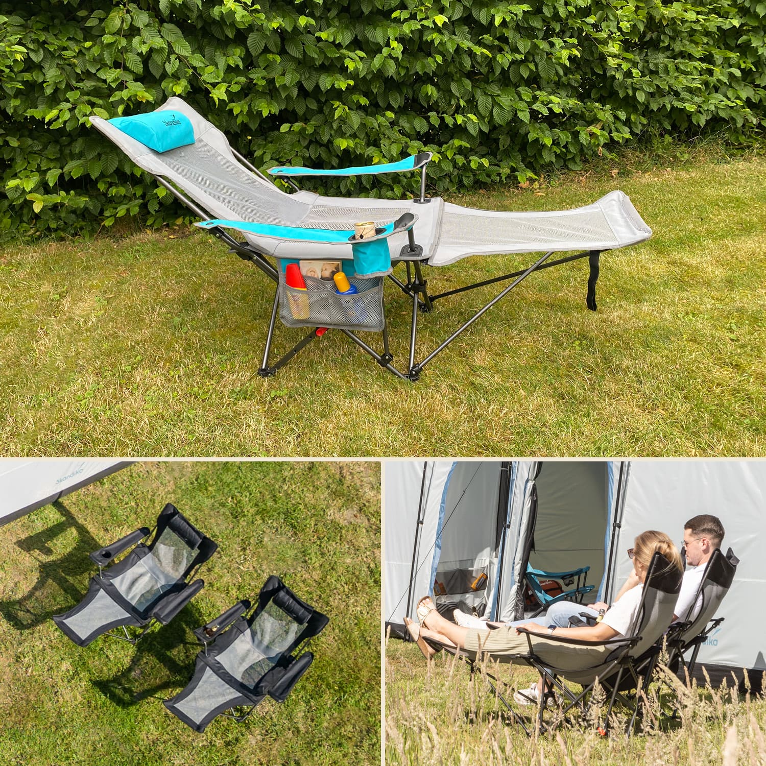 Achtung an all diejenigen, die eine Vorliebe für eine bequemen Sitzposition haben und ab und zu auch einfach mal die Füße hochlegen wollen, aber keine Lust auf sperrige und schwere Campingmöbel haben: Skandika hat die Lösung!