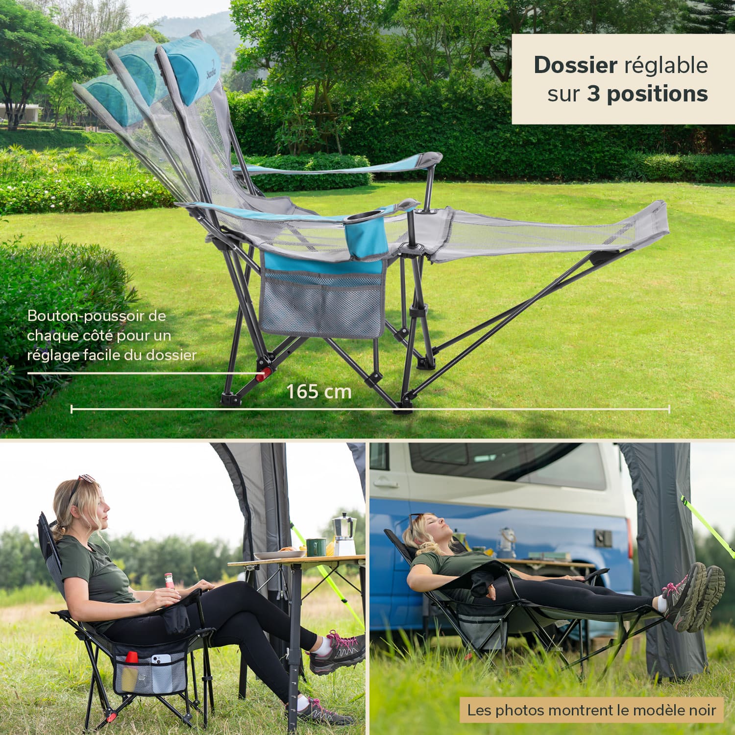 • Rückenlehne 3-fach verstellbar – von nahezu liegend bis fast komplett aufrecht sitzend