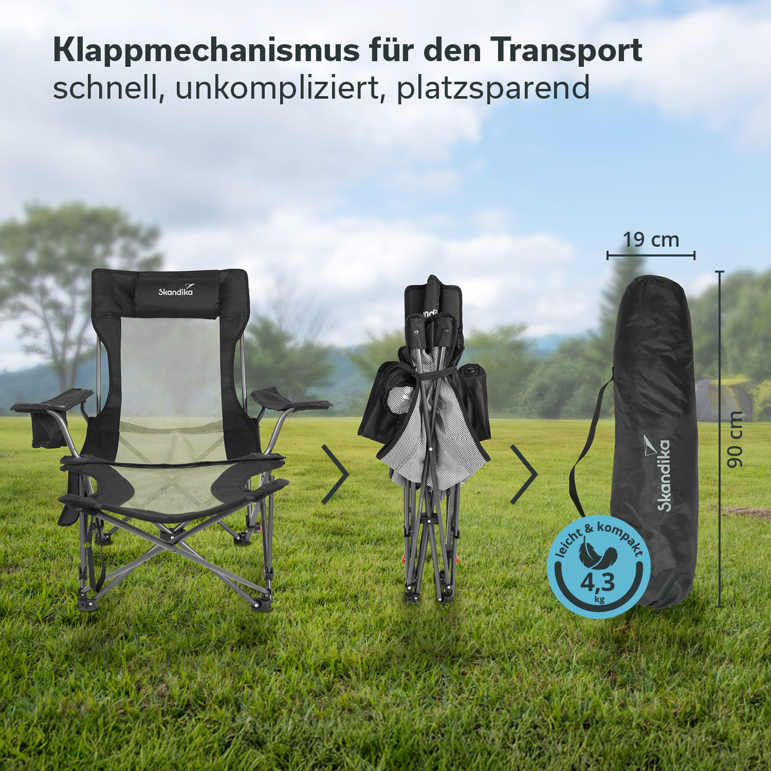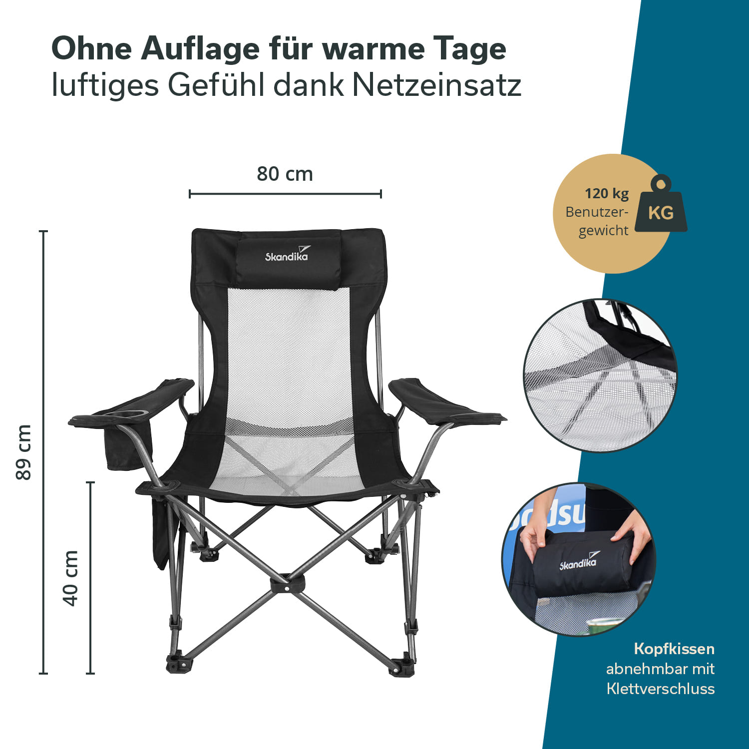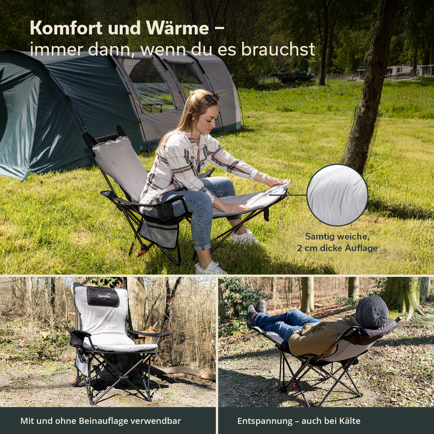 - Großer, bequemer Campingstuhl mit Netzeinsatz und weicher, warmer Auflage