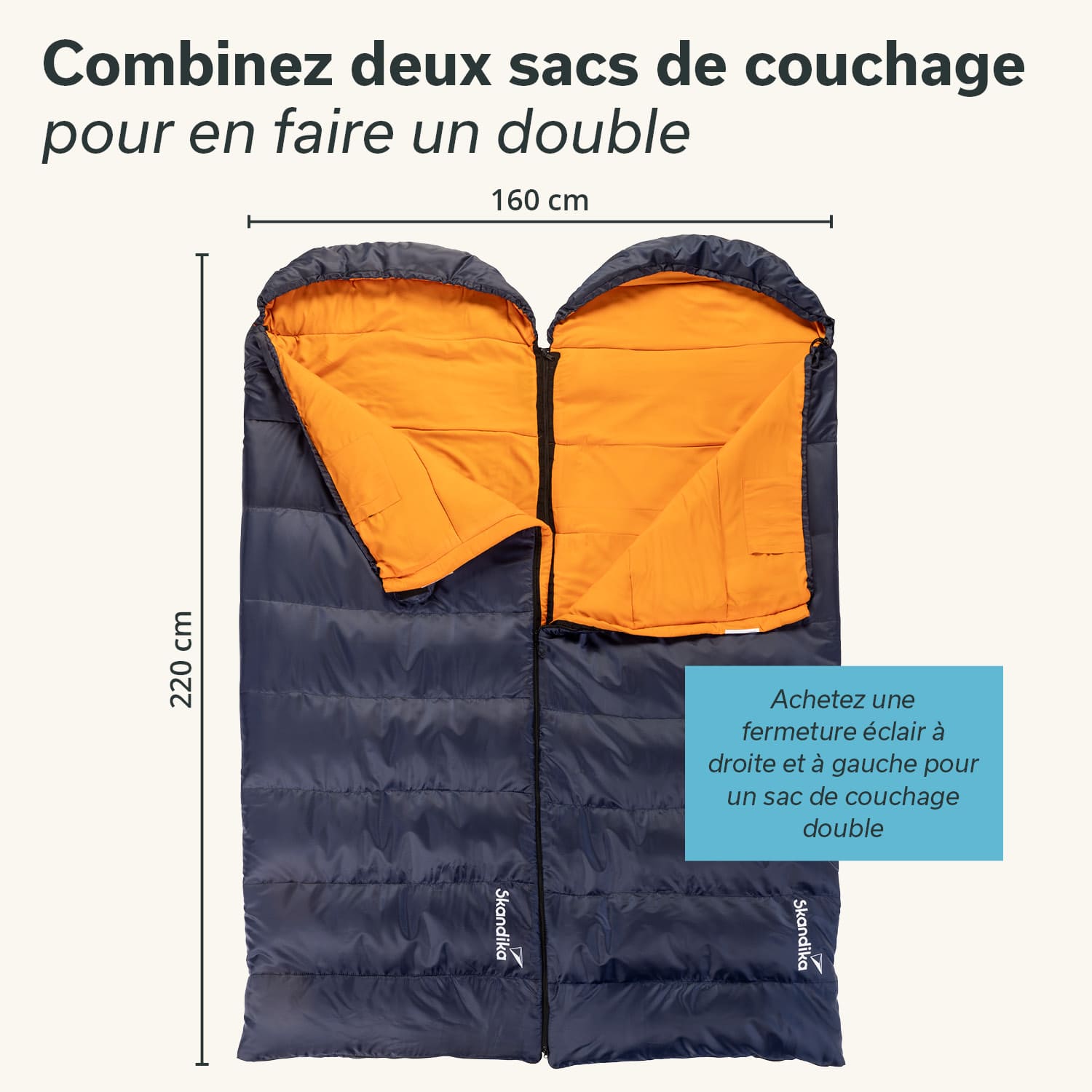 Dank der Möglichkeit, zwei Schlafsäcke mit entgegengesetzten Reißverschlüssen zu koppeln, verwandelt sich der Iceland im Handumdrehen in einen großen Schlafsack – ideal für Paare.