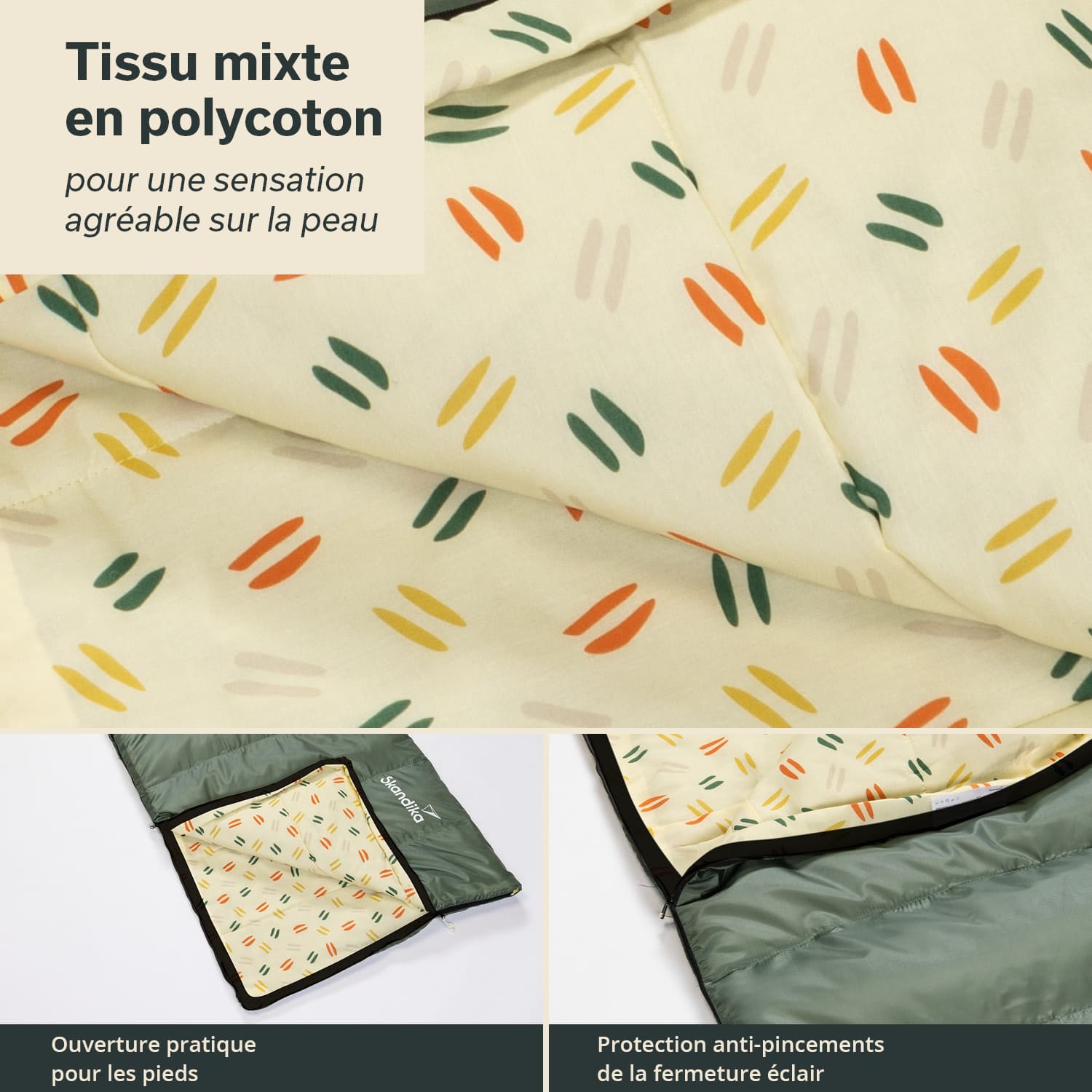 Das wasserabweisende Außenmaterial mit Anti-Raschel-Technologie ermöglicht einen ruhigen Schlaf und das Innenfutter aus atmungsaktivem Polycotton sorgt für ein angenehmes Schlafklima, ganz gleich ob in warmen Sommernächten oder bei kühleren Temperaturen.