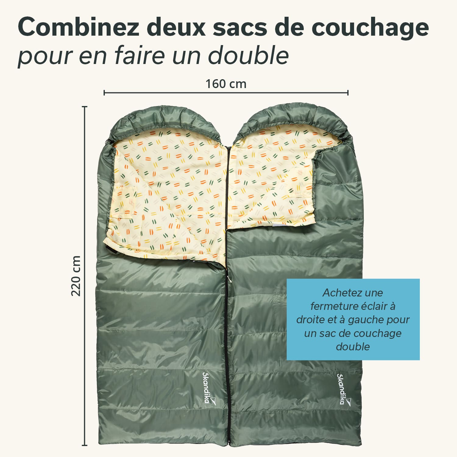 Dank der Möglichkeit, zwei Schlafsäcke mit entgegengesetzten Reißverschlüssen zu koppeln, verwandelt sich der Iceland im Handumdrehen in einen großen Schlafsack – ideal für Paare.