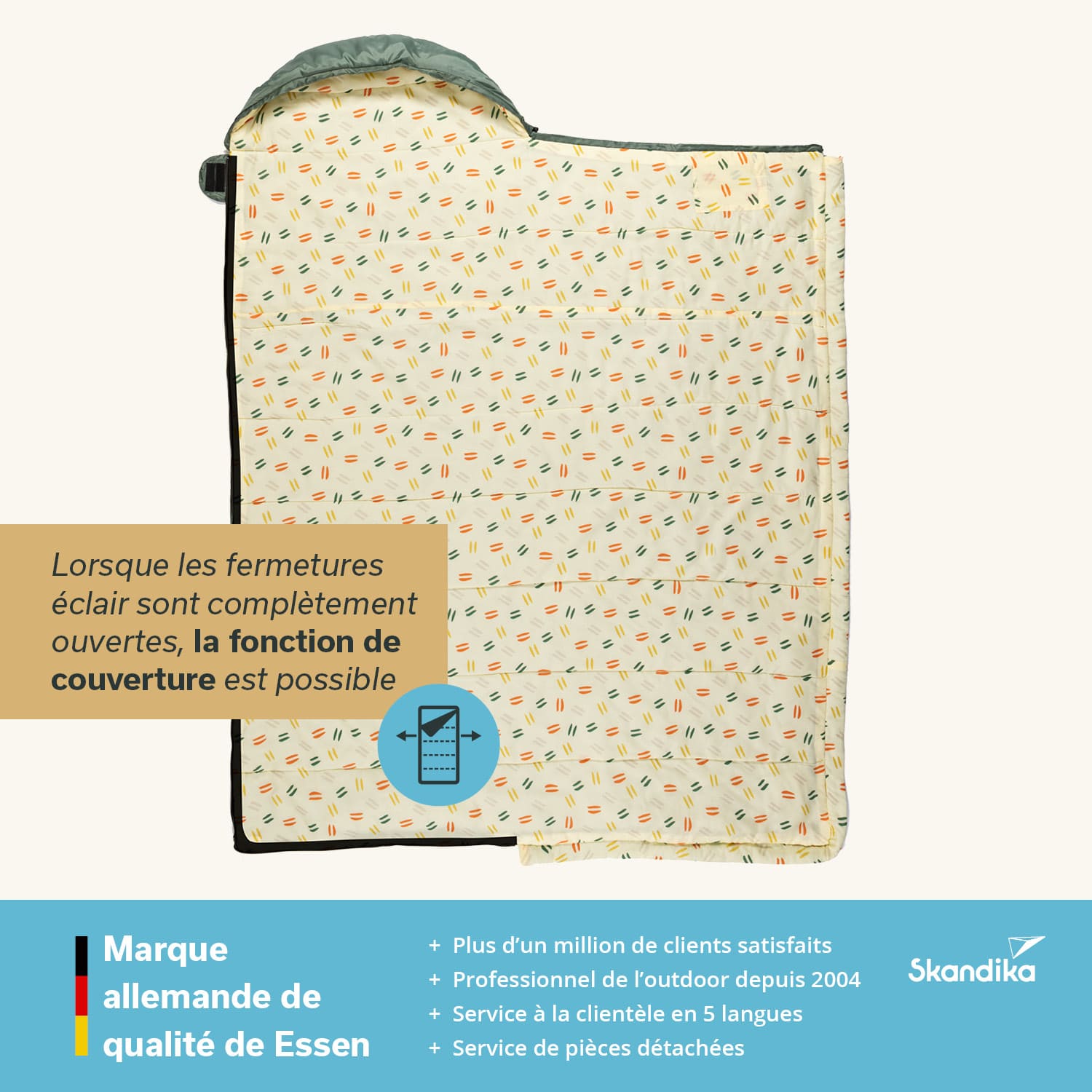Die Skandika Iceland Schlafsack-Kollektion besteht aus kuschelig warmen Schlafsäcken in Deckenform und ist perfekt für alle, die nachts ihre Bewegungsfreiheit zu schätzen wissen. Die gerade, rechteckige Form bietet sowohl im oberen Schulterbereich als auch am Fußende viel Platz und gleichzeitig sorgt das gemütliche Kopfteil für zusätzliche Geborgenheit, ähnlich wie bei Mumien-Schlafsäcken. Top ausgestattet, schick im Design und vor allem praktisch, sind unsere Iceland Schlafsäcke für Camping, Festivals und Überraschungsgäste immer eine gute Wahl.