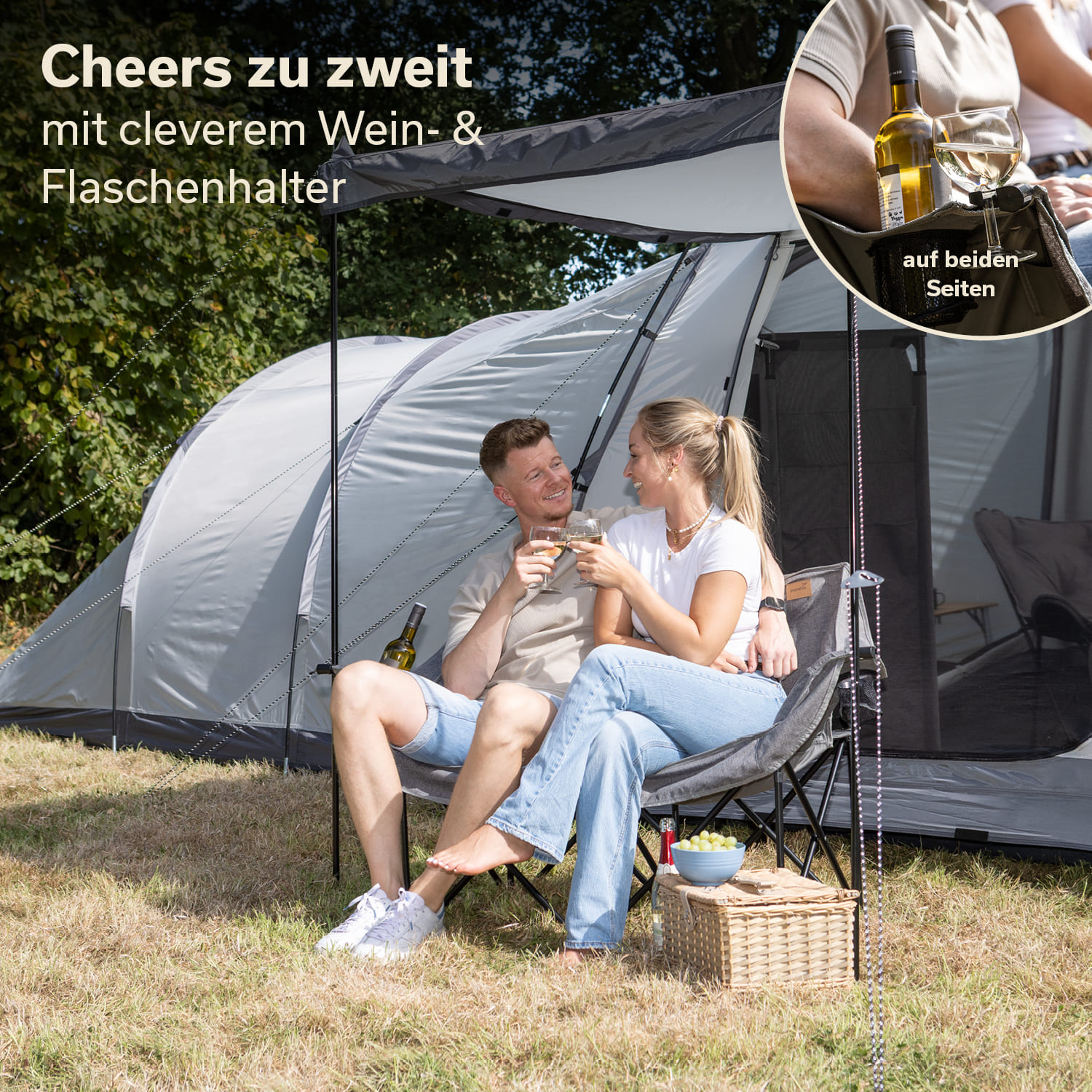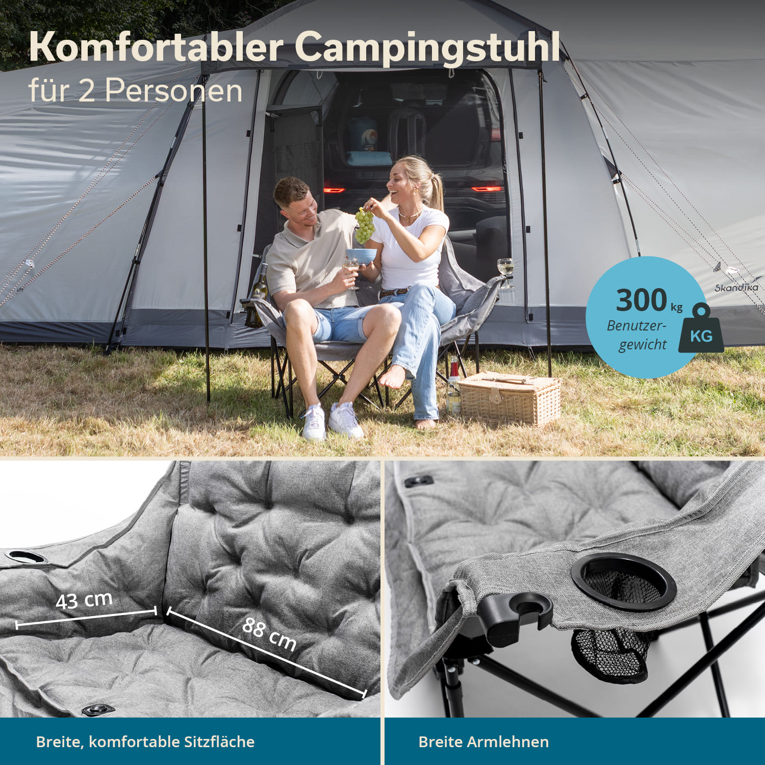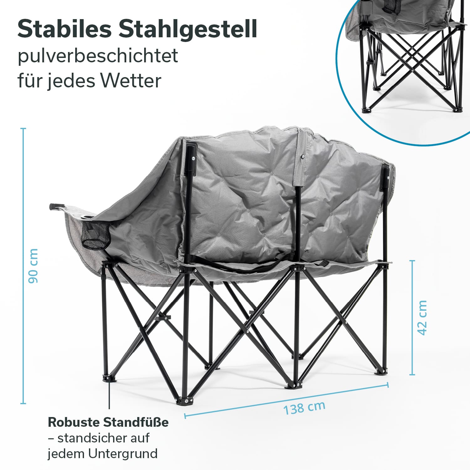 Ob Festival, Camping, Picknick oder Strand – dieser bequeme Zweisitzer macht überall eine gute Figur.