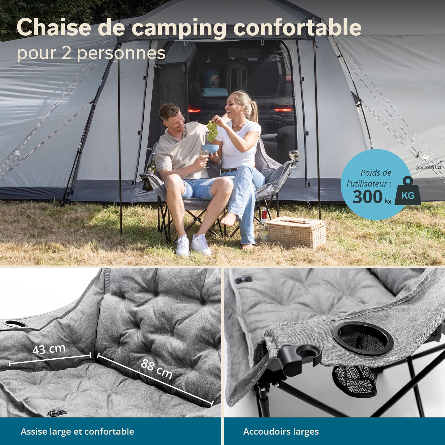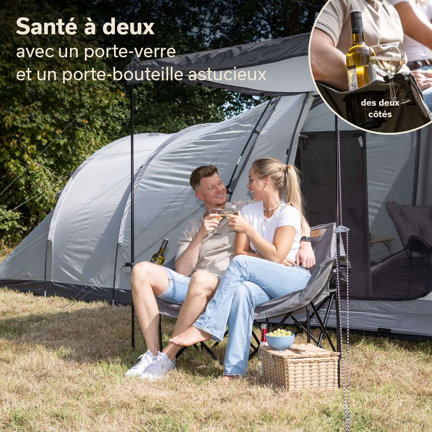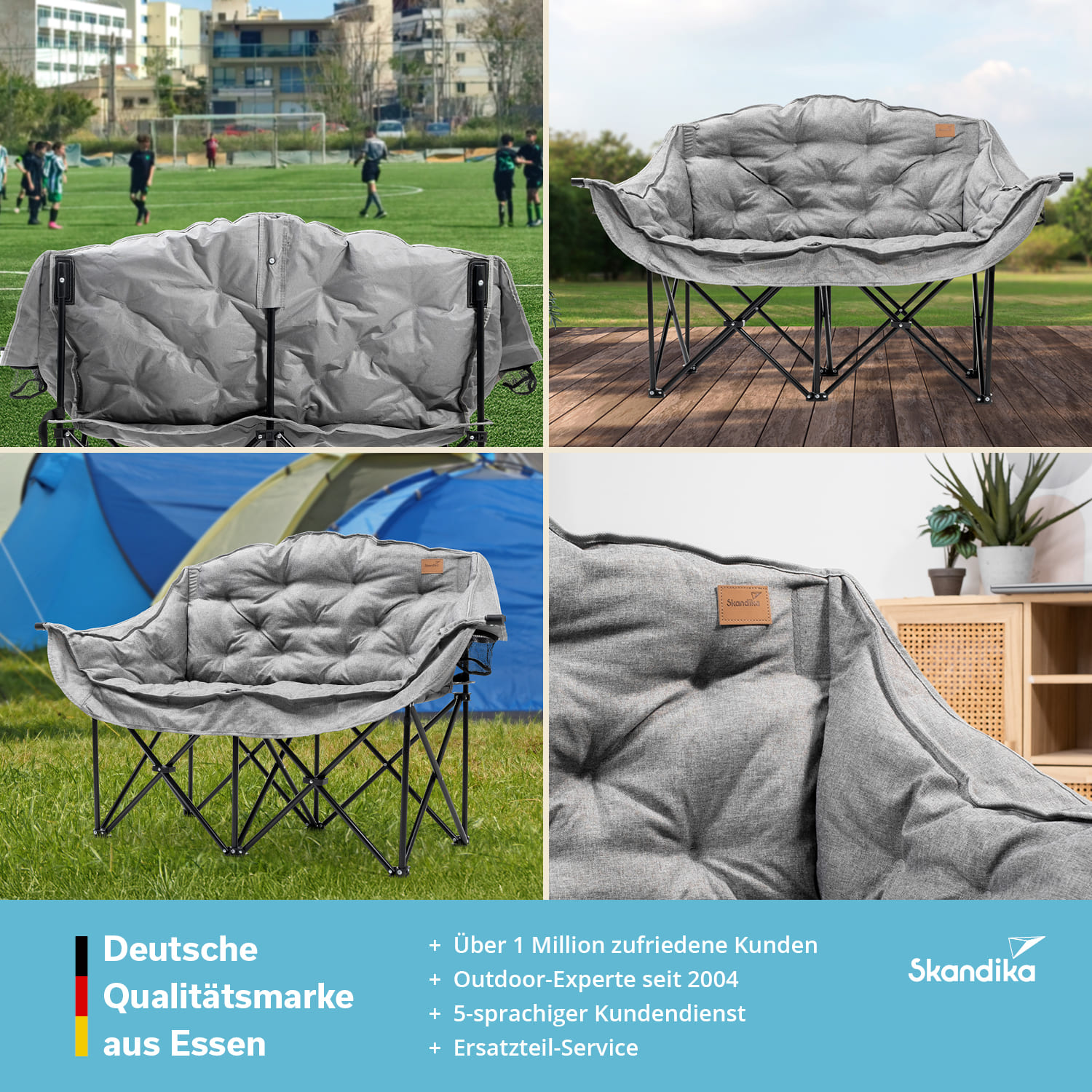 Ob Festival, Camping, Picknick oder Strand – dieser bequeme Zweisitzer macht überall eine gute Figur.