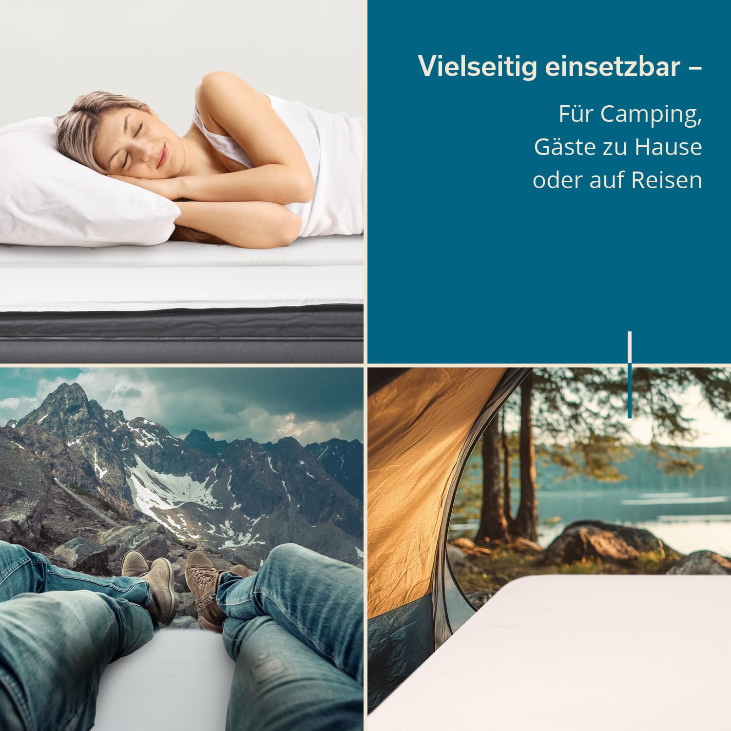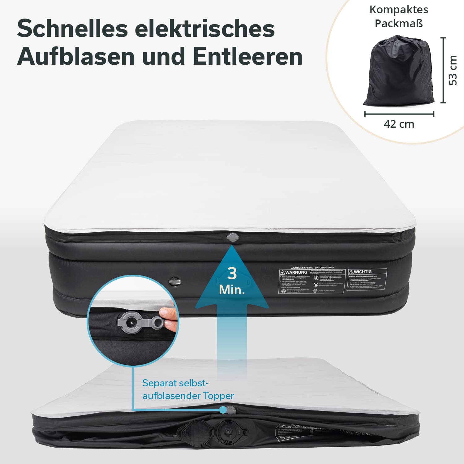 - Mit einem integrierten 5 cm dicken, selbstaufblasenden Matratzentopper für spürbar mehr Komfort