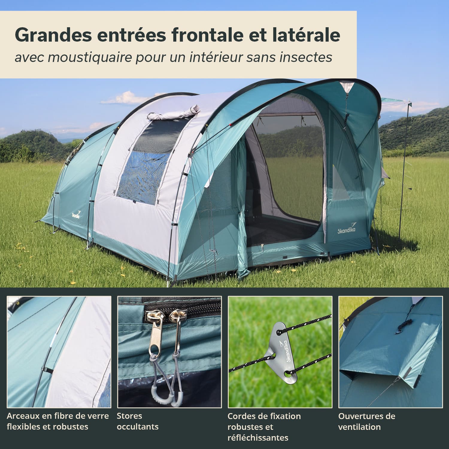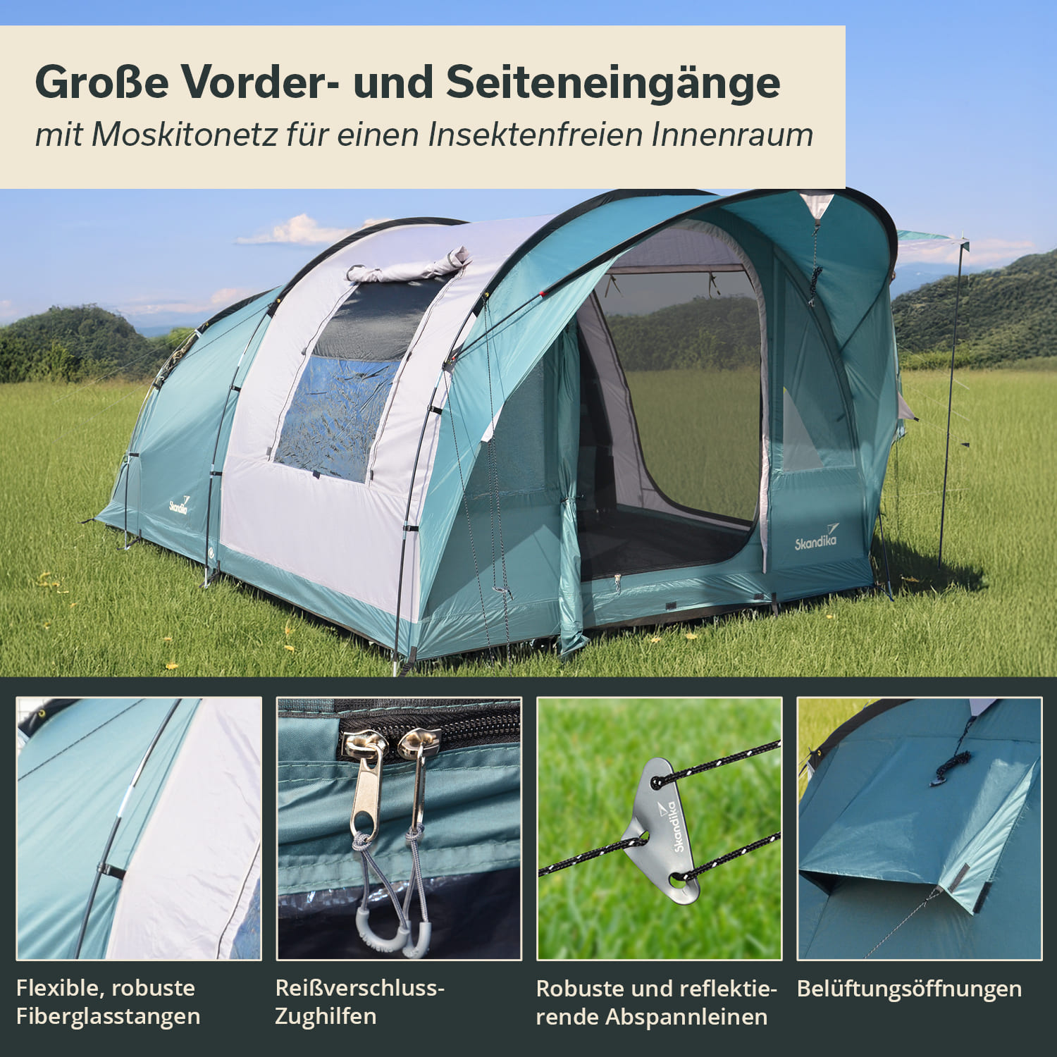 • Lichtdurchflutetes Tunnelzelt für bis zu 3 Personen im schicken Design und mit vielen Extras