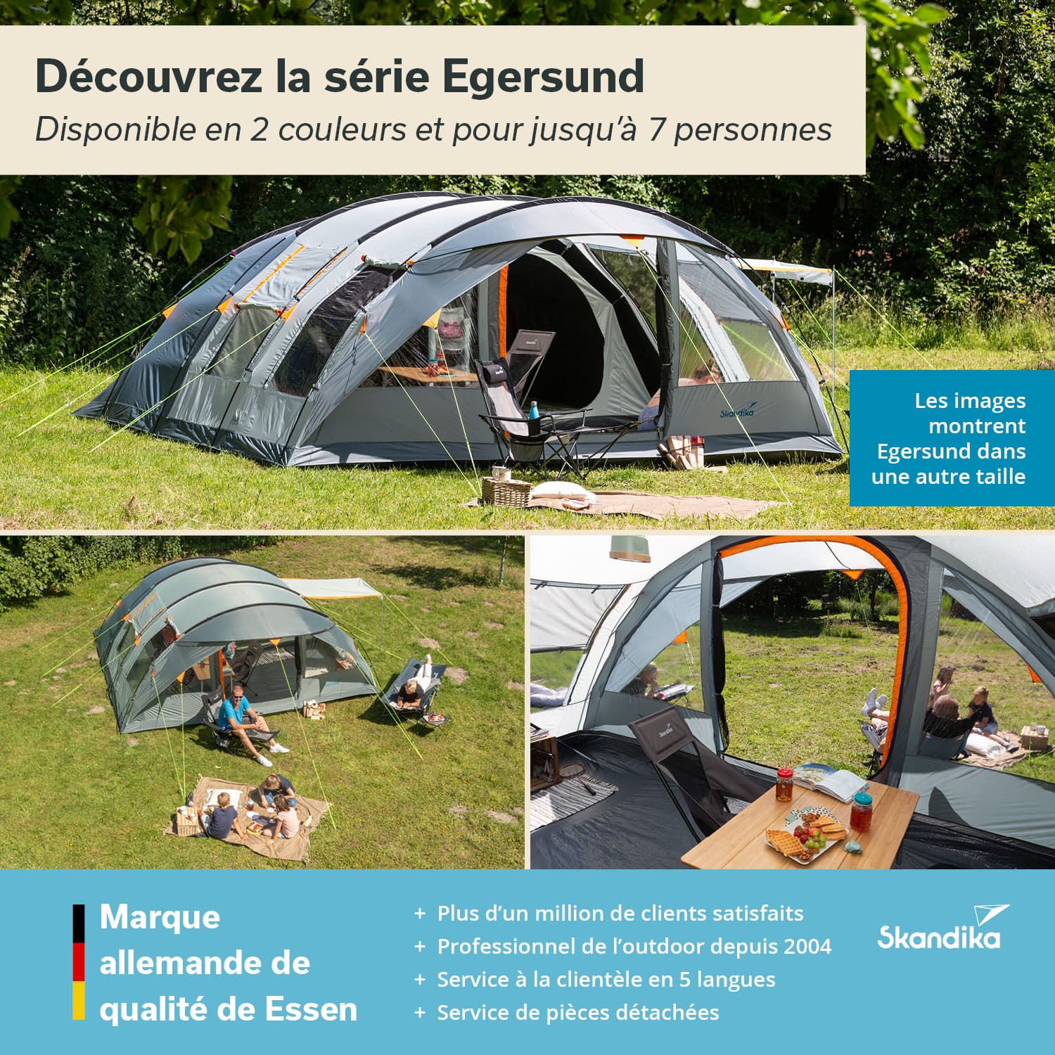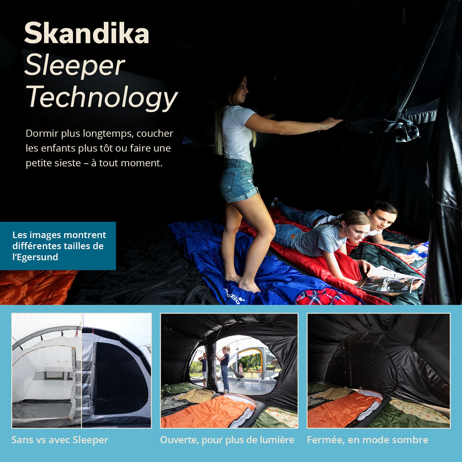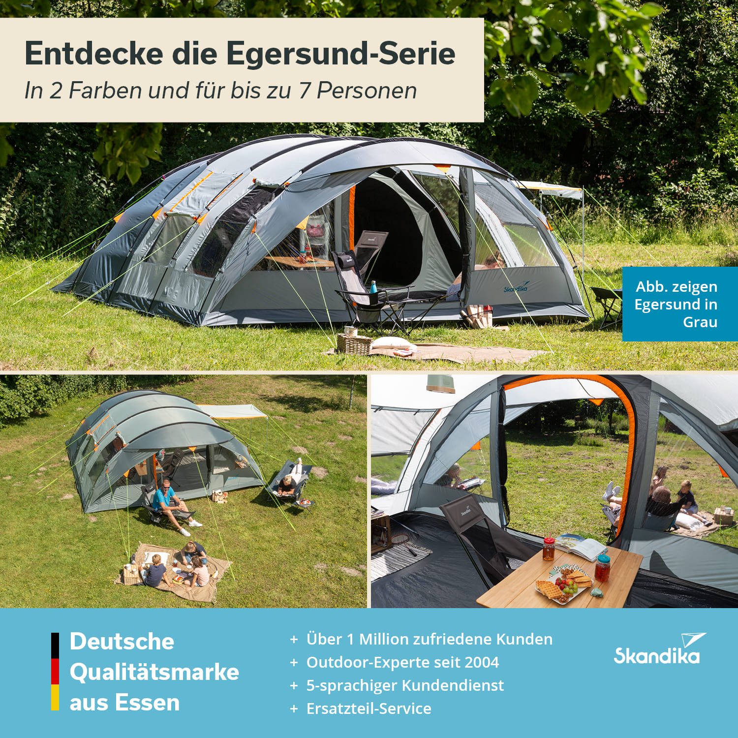Unser beliebtes Egersund Tunnelzelt gibt es jetzt auch als Egersund 3 Sleeper Protect für drei Personen – inklusive eingenähtem Zeltboden und Skandika Sleeper Technology mit einer speziellen Beschichtung des Außenzeltes und einer dunklen Innenkabine. Das standsichere, wetterfeste Zelt ist eine exzellente Wahl für Paare, die gemeinsam zelten wollen, oder wenn Freunde zusammen unterwegs sind, die Komfort und ruhige Nächte schätzen.