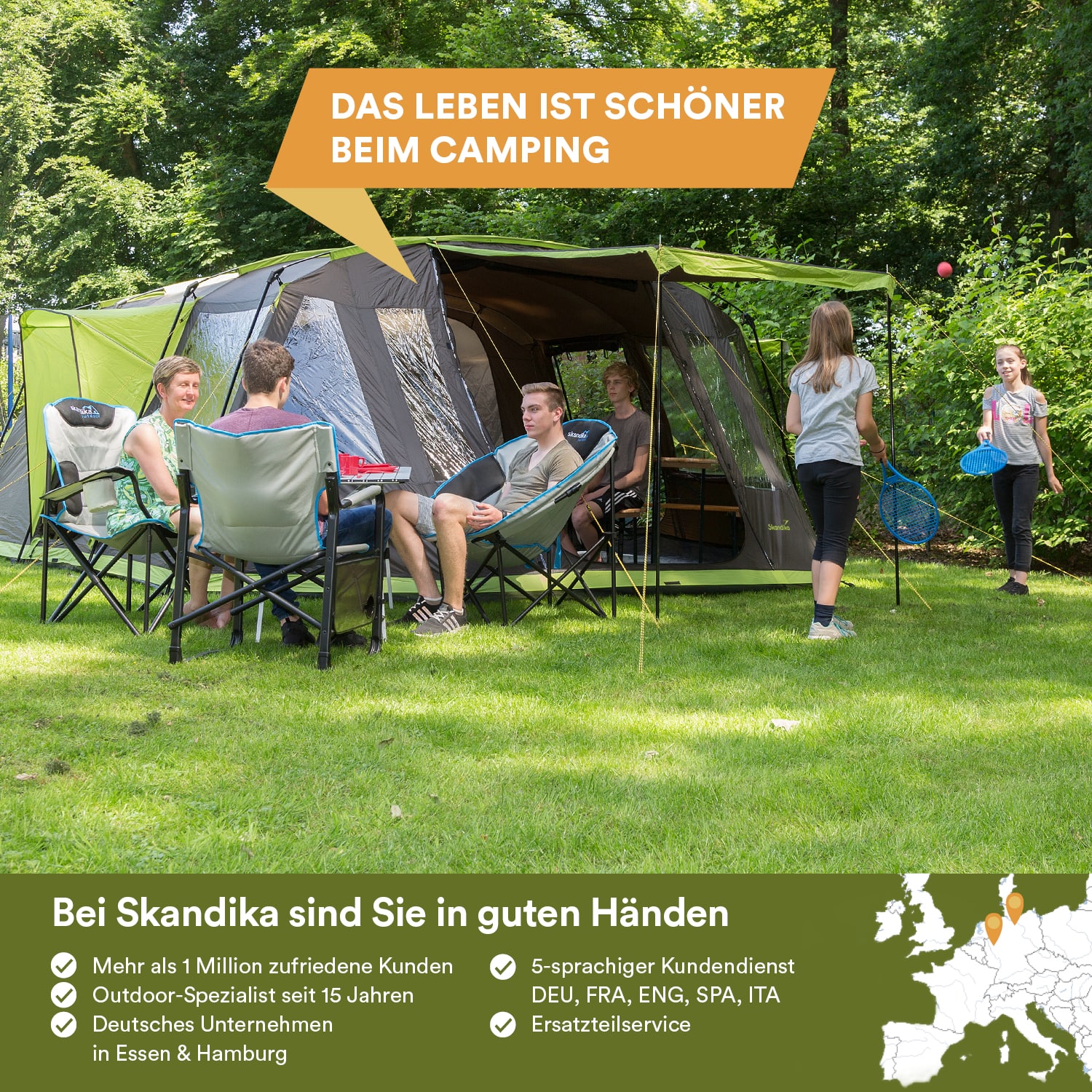 Das Skandika Nordland ist ein geräumiges 4 Personen Zelt mit einer komfortablen, lichten Höhe von 200 cm und gewährt optimale Bewegungsfreiheit. Das geräumige Nordland ist durch sein besonders witterungsbeständiges und gleichzeitig atmungsaktives Material sowie die verklebten Nähte eine gute Investition für viele Jahre garantierter Campingfreude.