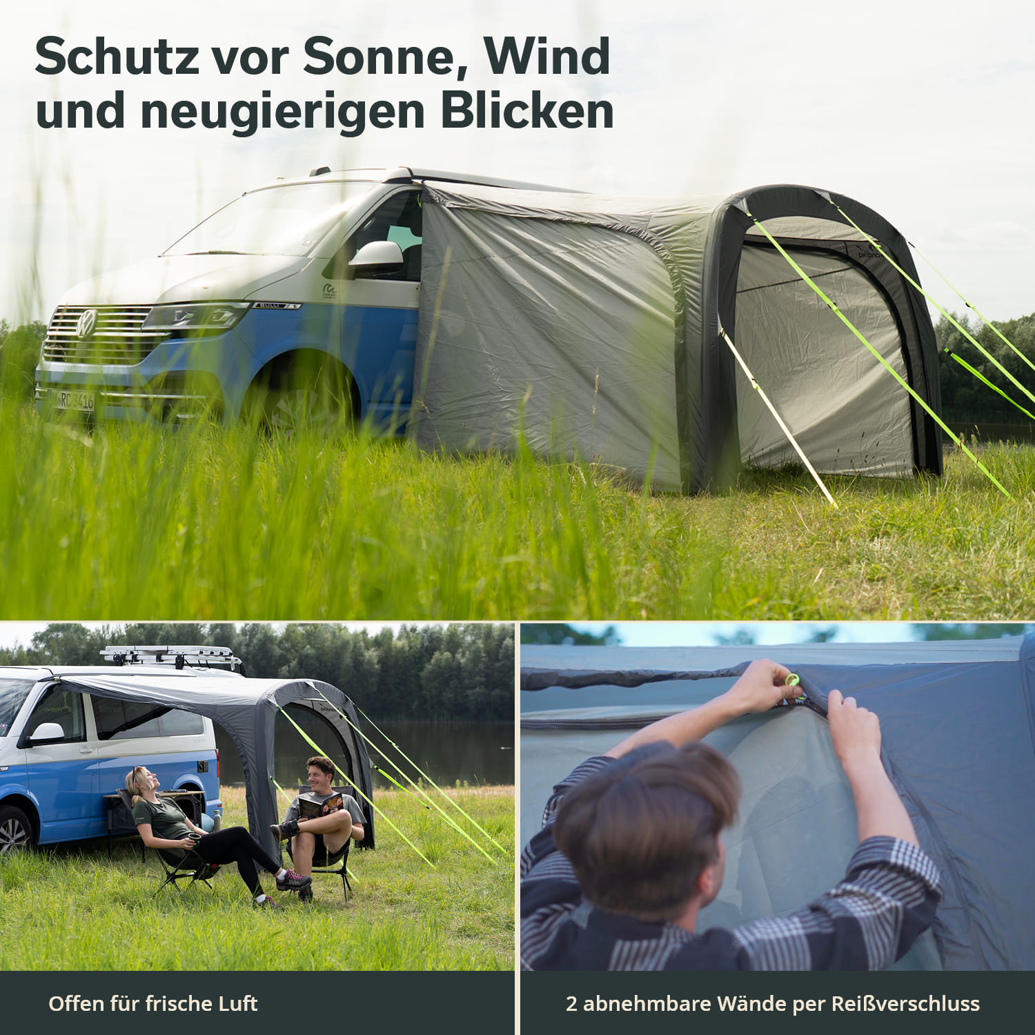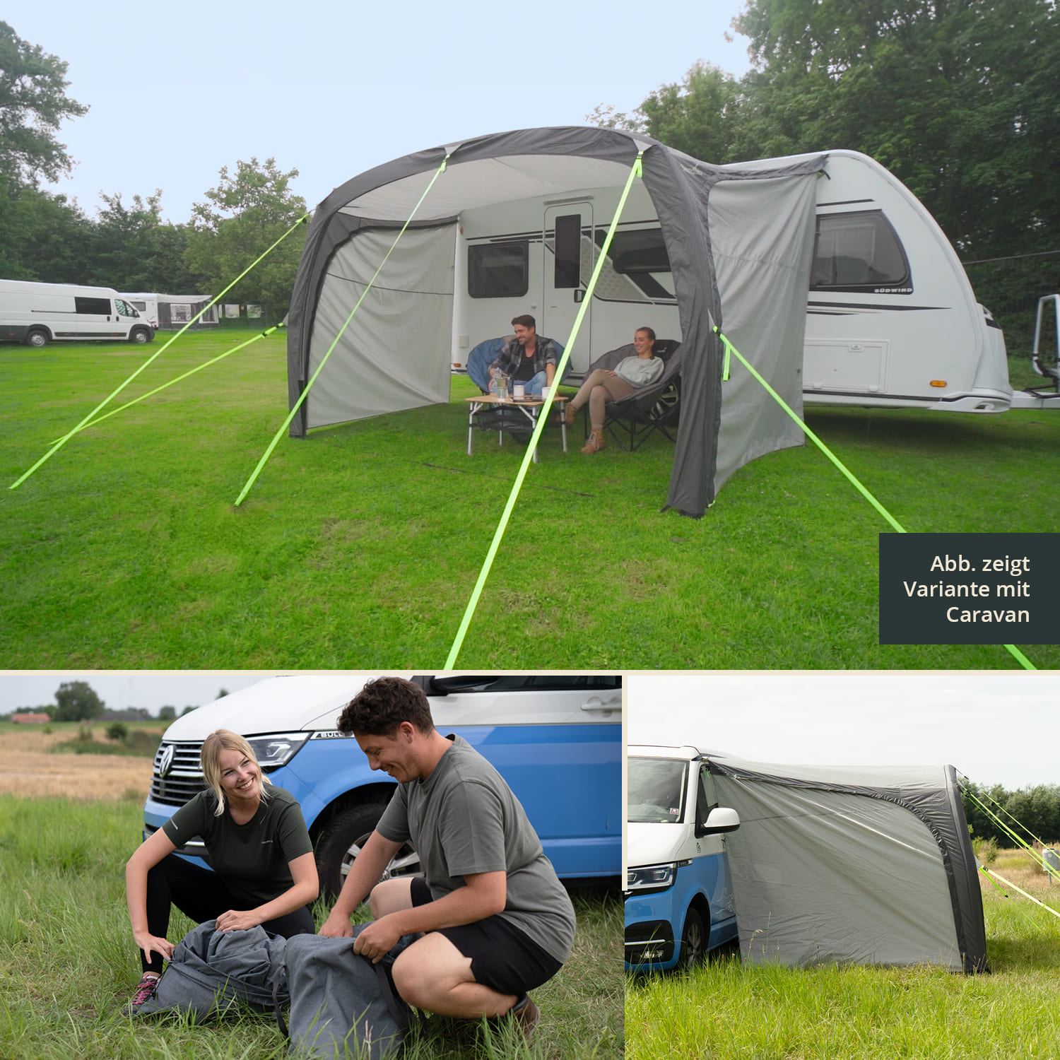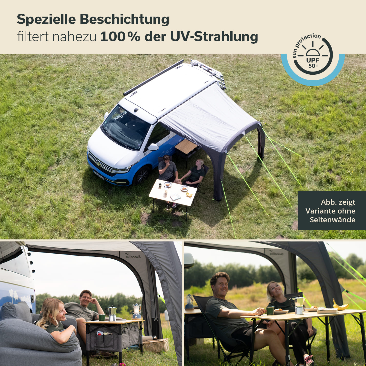 Nicht nur ein Dach über dem Kopf, sondern auch clevere Seitenwände, die noch mehr Schutz vor Wind und Wetter geben und den Komfort für alle Aktivitäten im Freien am Camper deutlich erhöhen.