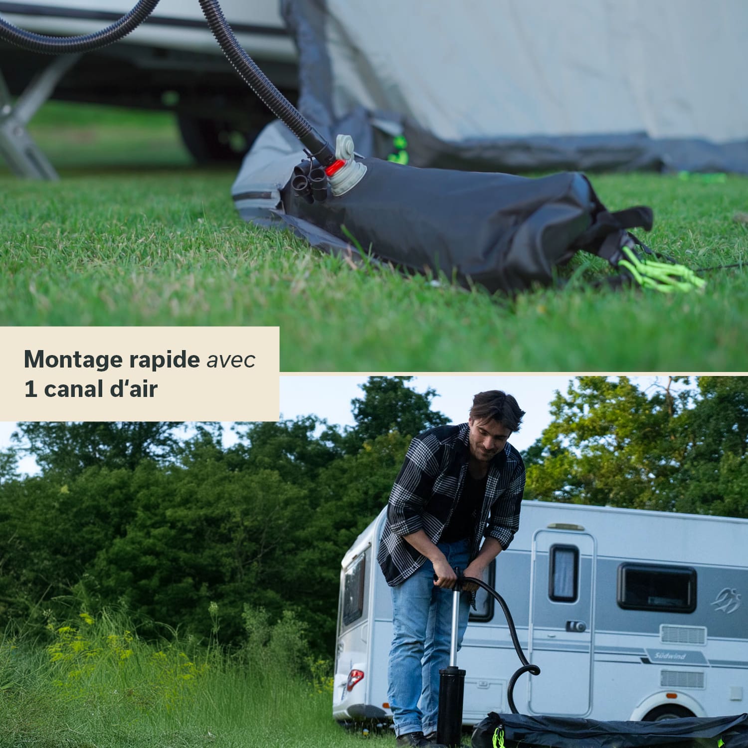 Nie war der Aufbau einfacher! Anstelle von lästigem Gestänge, wird Vika Air Van einfach und besonders schnell aufgepumpt! Die Skandika Air-Rise Technology ist so simpel, dass auch Kinder anpacken können: Auspacken, Abstecken, Aufpumpen, Abspannen – der Urlaub kann beginnen!