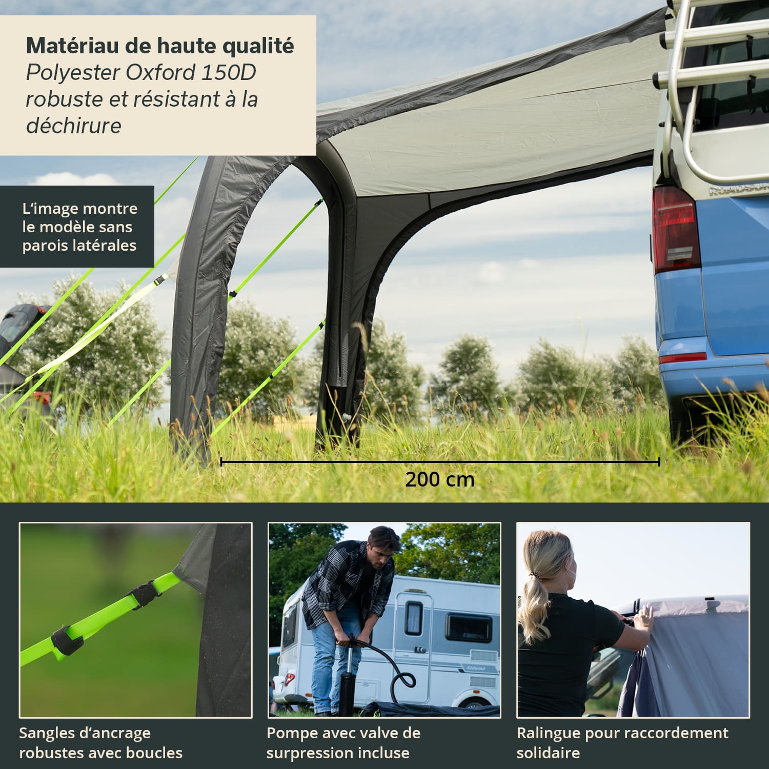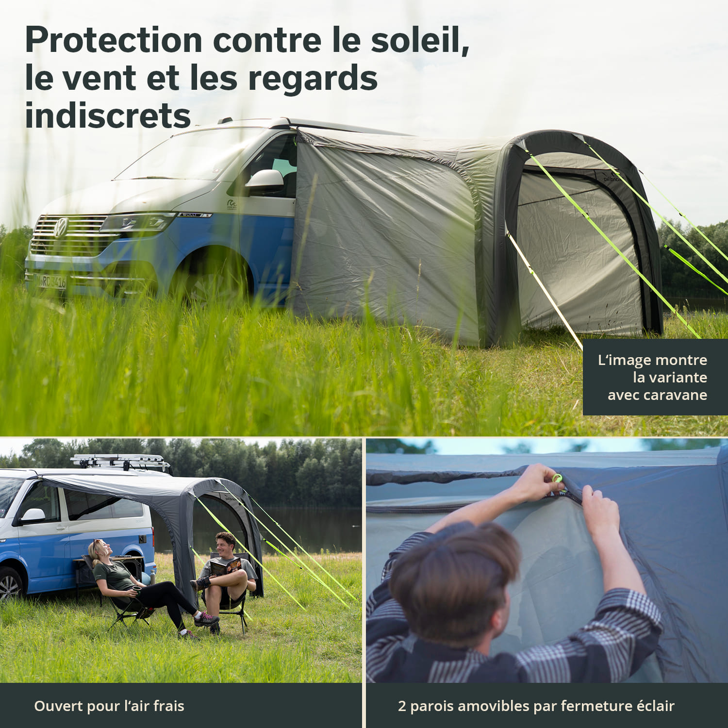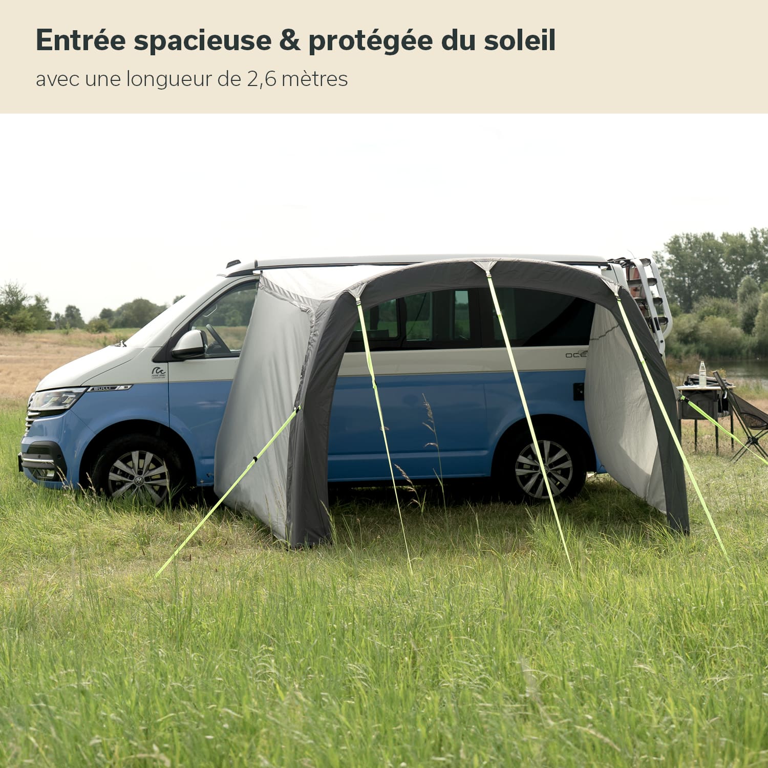 Wer sich einen optimal geschützten Eingangsbereich für den Campervan wünscht, ist bei unserem Vika Air Van 260 mit Seitenwänden genau richtig! Das clevere Vordach ist dank Skandika Air-Rise Technology im Nu aufgestellt und befestigt. Die zwei Seitenwände geben noch mehr Schutz und werden ganz einfach mittels stabiler Reißverschlüsse am Vordach befestigt.